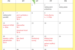 plánované akce naší školy na měsíc DUBEN.
