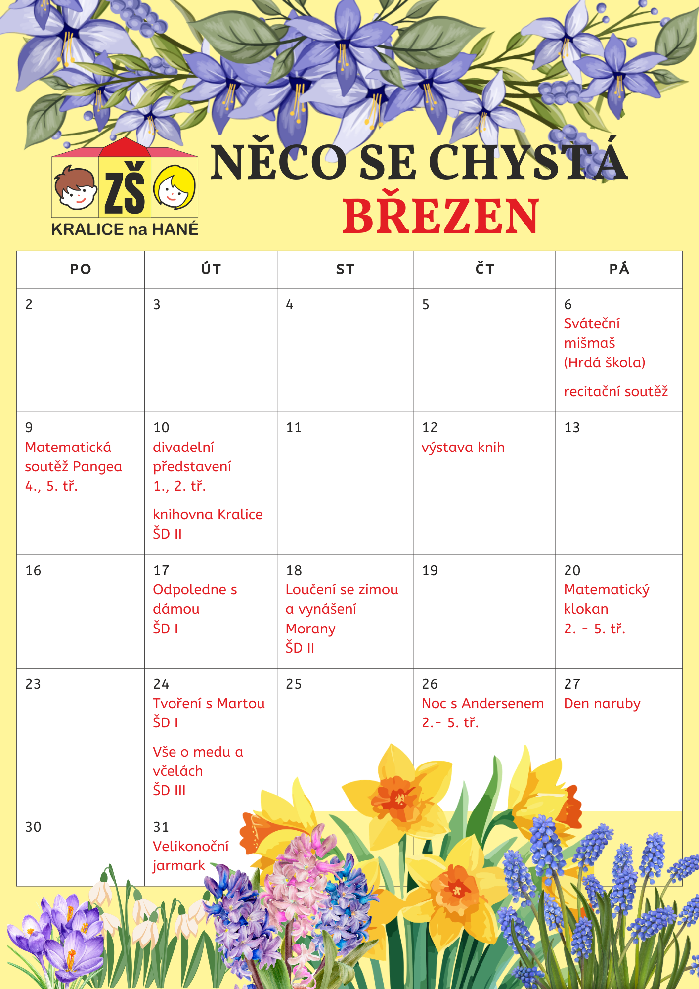 Plánované akce naší školy na měsíc BŘEZEN.