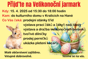 vícese koná v úterý 15. dubna 2025 od 15:30 do 18:00 v KULTURNÍM DOMĚ v Kralicích na Hané.