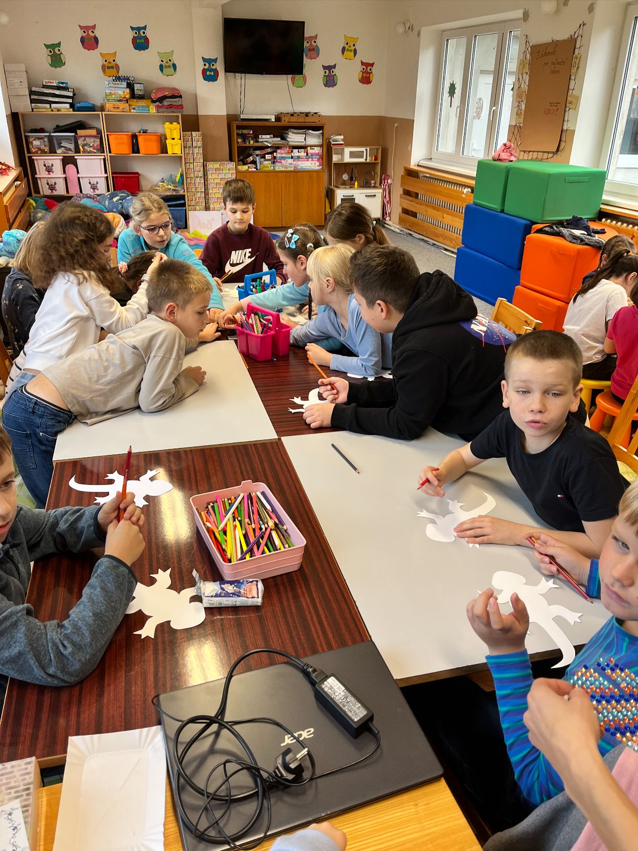 Potom děti dostaly papírovou agamu, kterou si mohly vykreslit a ozdobit.