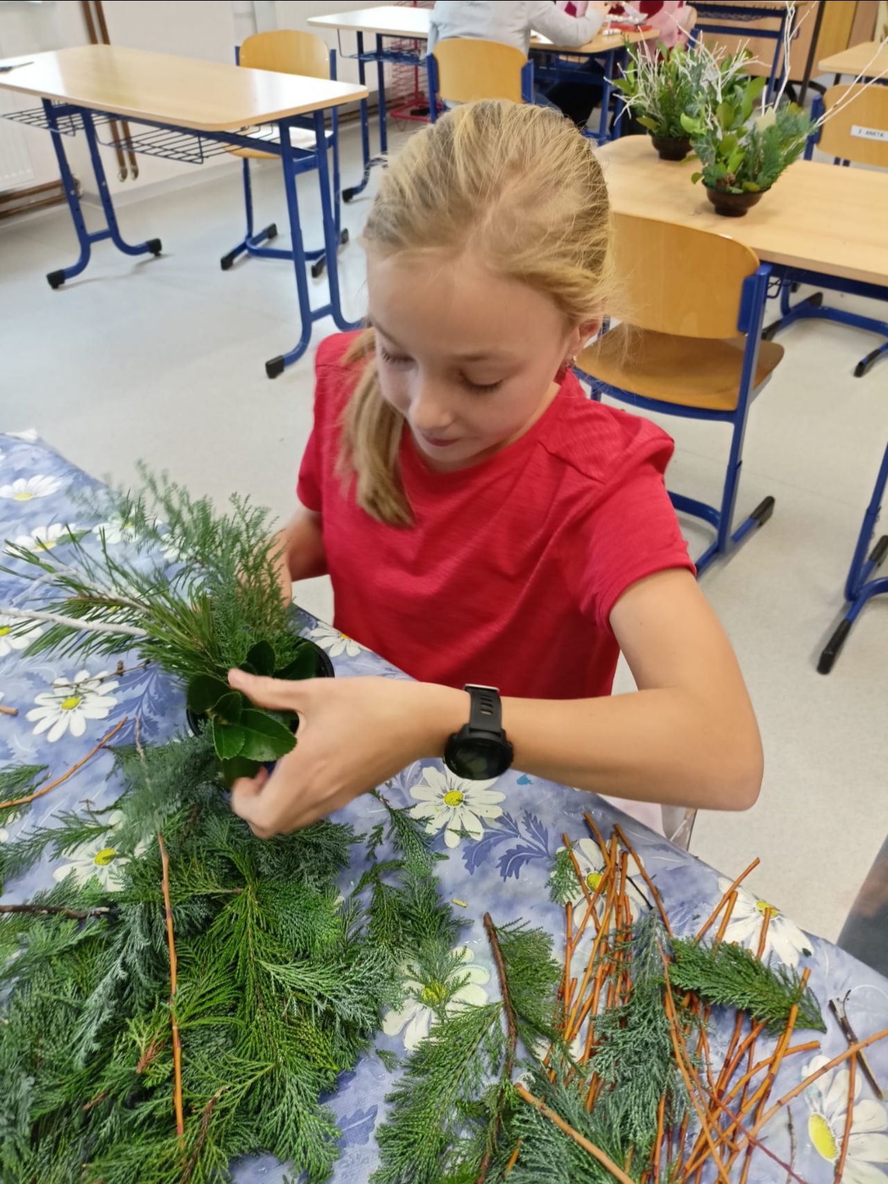 Odpoledne zakončily výrobou adventní vazby, kterou si každý odnesl domů.
