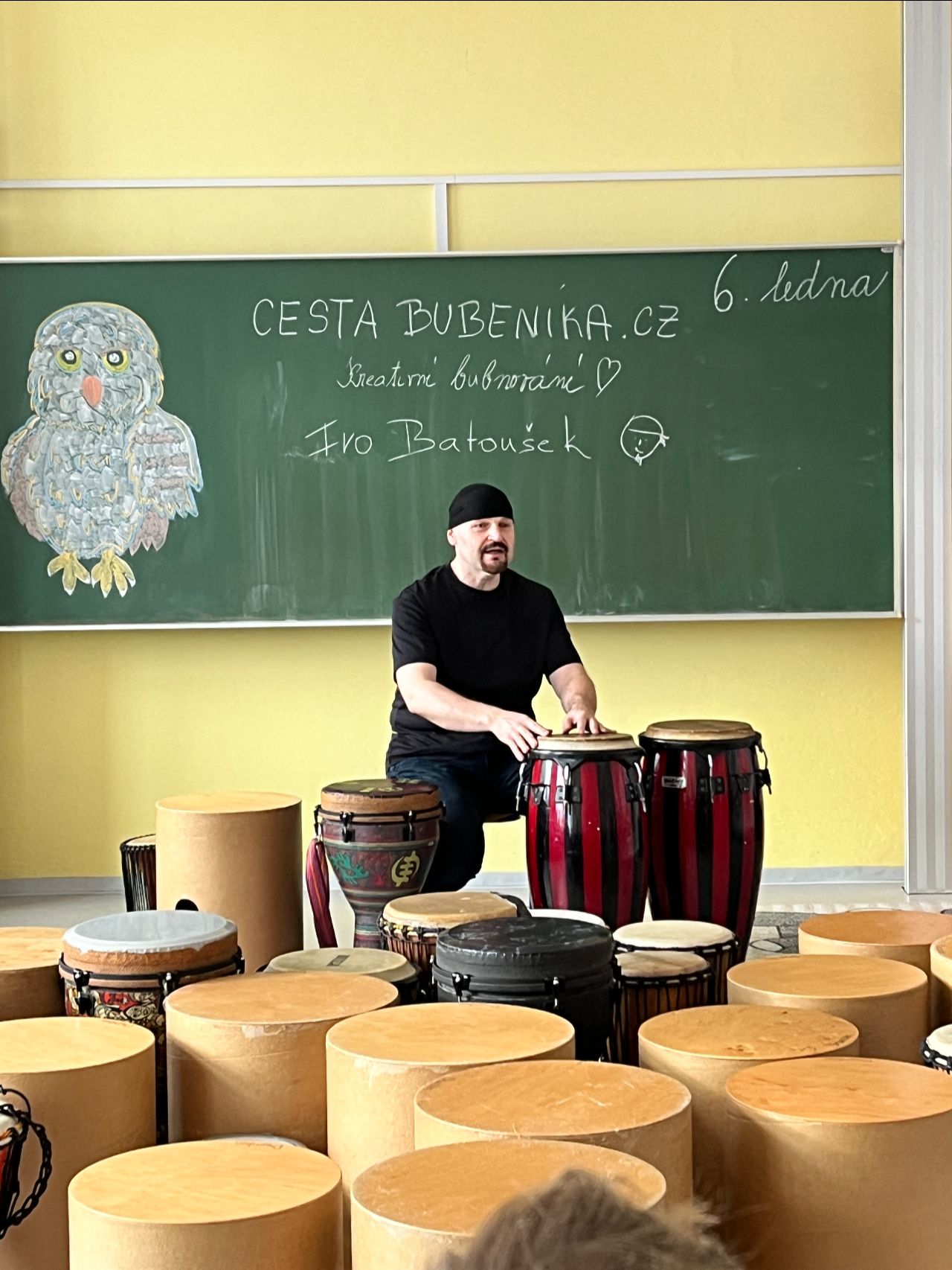 V úterý 6. 1. 2026 navštívil děti z II. a III. oddělení školní družiny bubeník pan Ivo Batoušek.