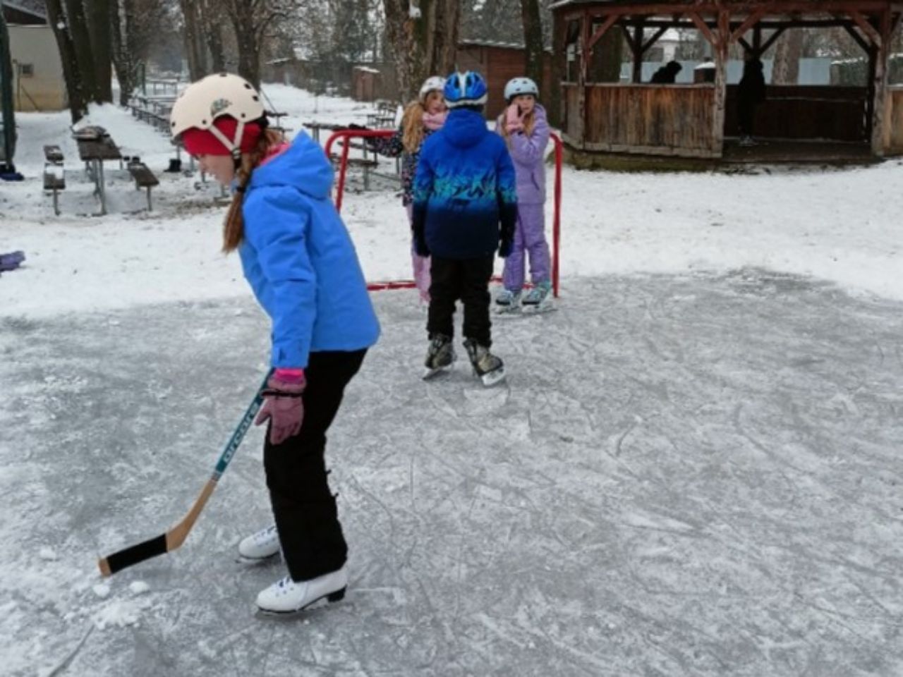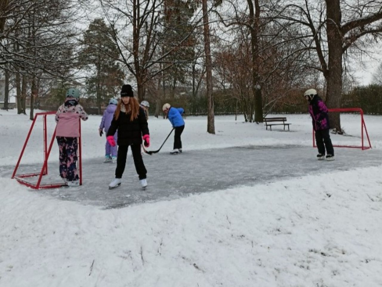 Ve čtvrtek 15. 1. 2026 si nejprve na ledovém hřišti v parku zahrály hokej a zabruslily. Potom se vydaly jezdit na bobech.