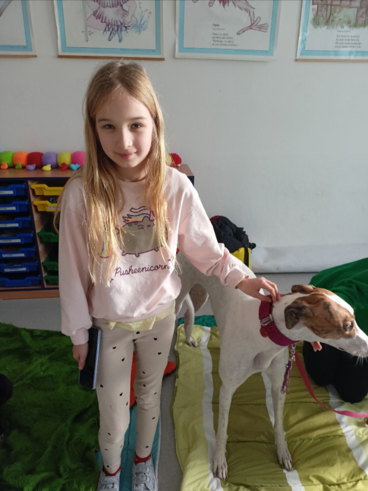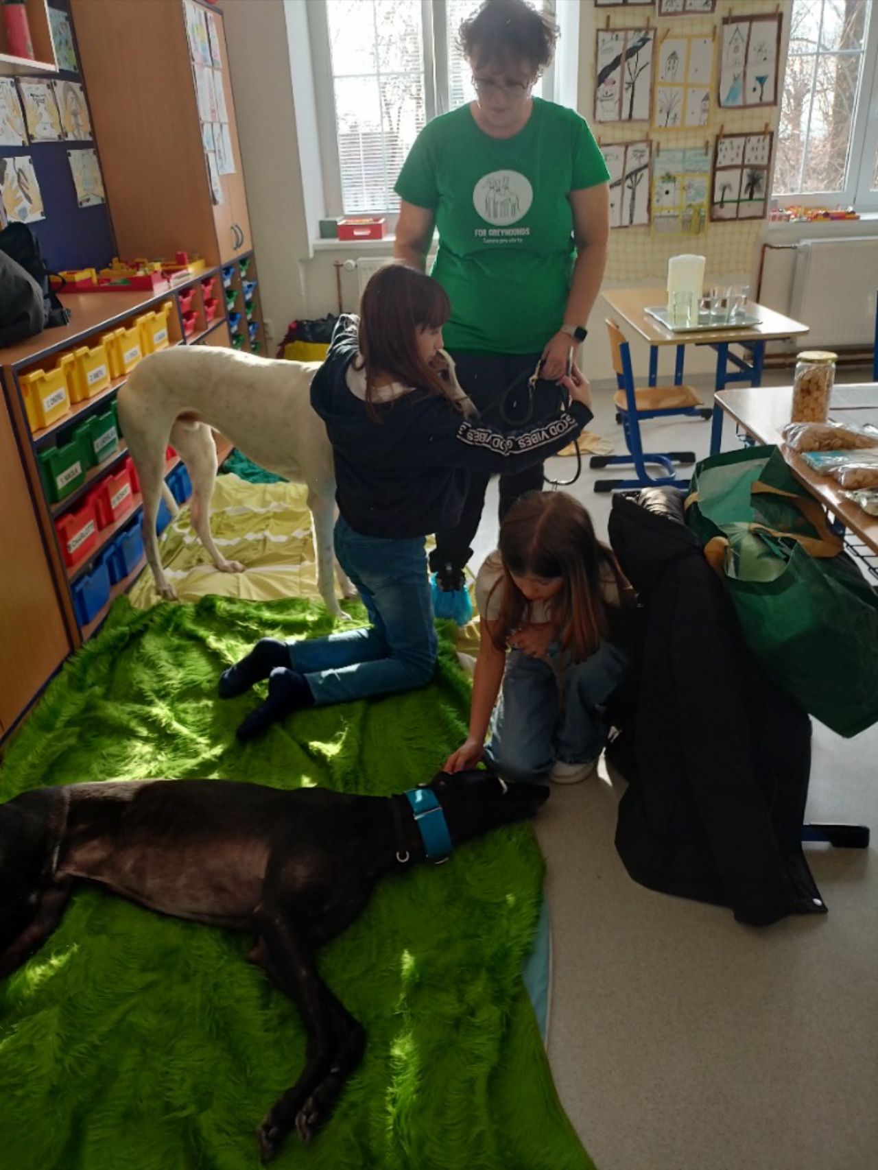 Děti se od představitelů organizace For Greyhounds dozvěděly, proč zachranují psi z Irska. Nejprve zhlédly krátké video, dozvěděly se o historii a chovu plemene chtrů i jaké mají povahové vlastnosti. Poté měly možnost si psi pohladit a projít se s nimi po školní zahradě a vyzkoušet, že jsou doopravdy rychlí.