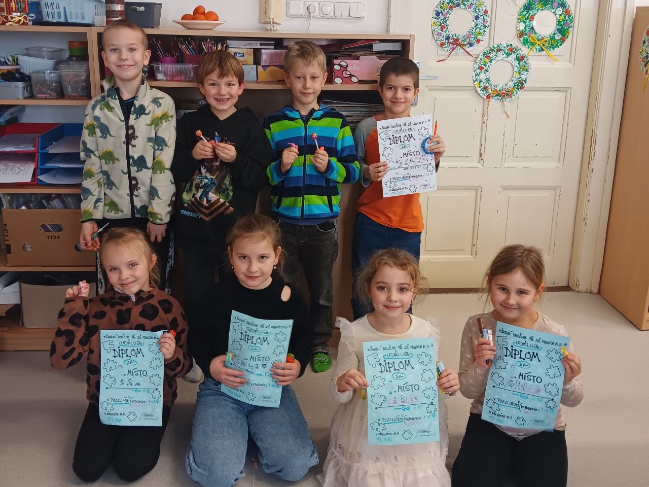 Děti se velmi snažily o co nejkratší čas. Skládali a úspěšně doskládali, kromě nemocných, úplně všichni.