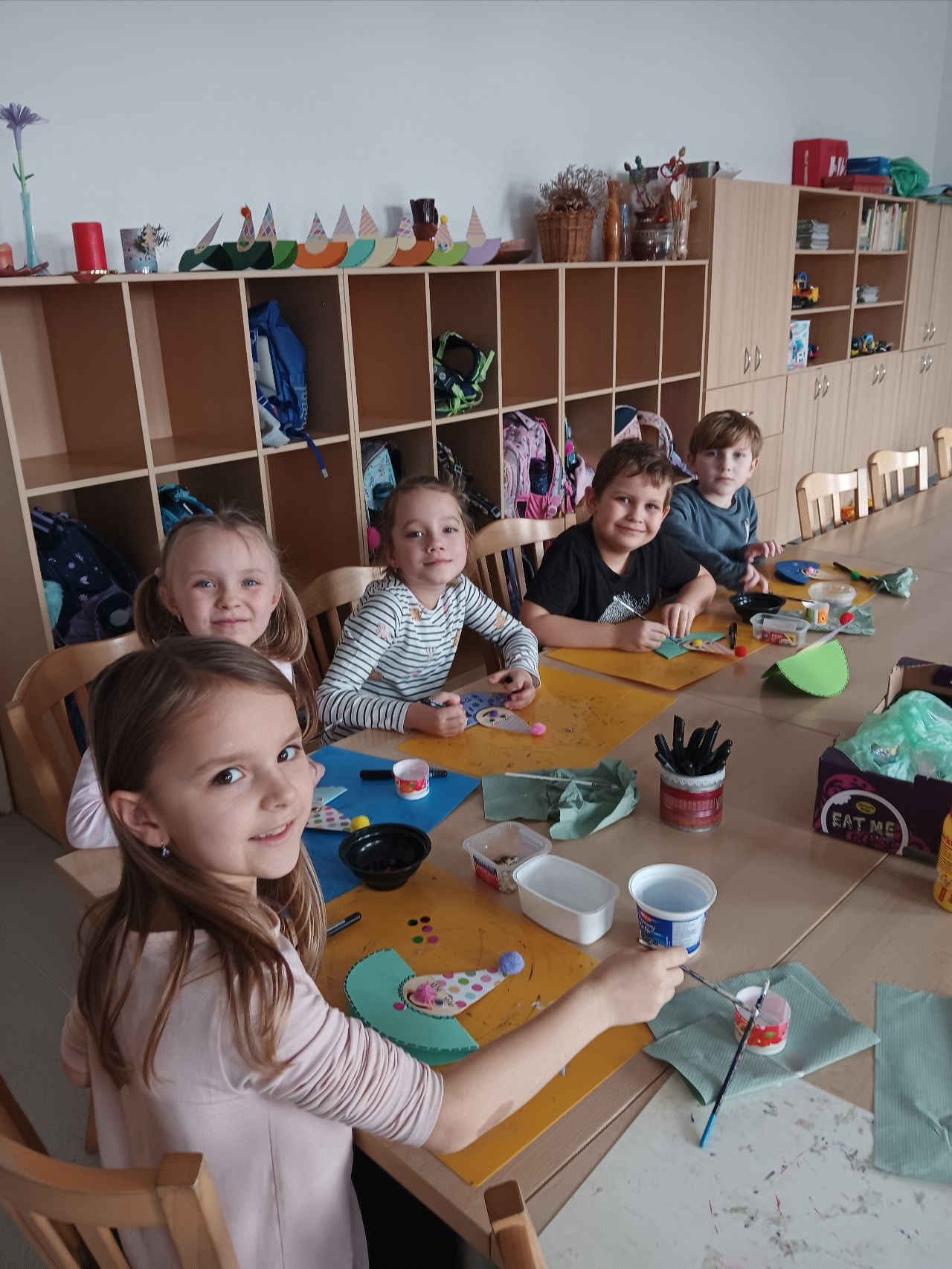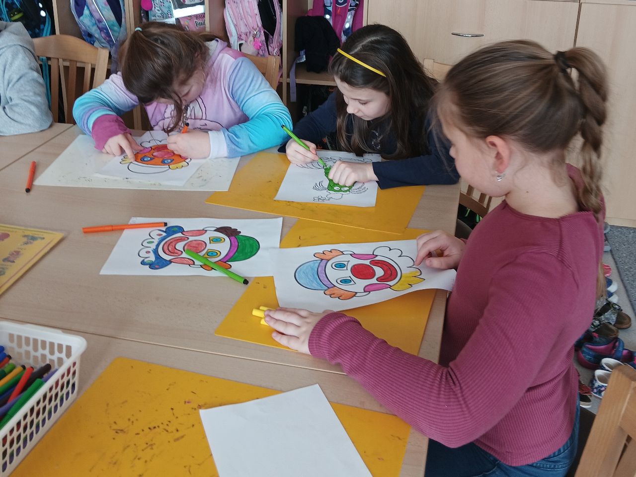 Paní vychovatelka pro děti na celý týden připravila nejen zajímavé povídání, informace a videa o tradici a průběhu masopustu, ale i výtvarnou dílnu, ve které děti vyráběly houpacího klauna pomocí šablon z papíru.
