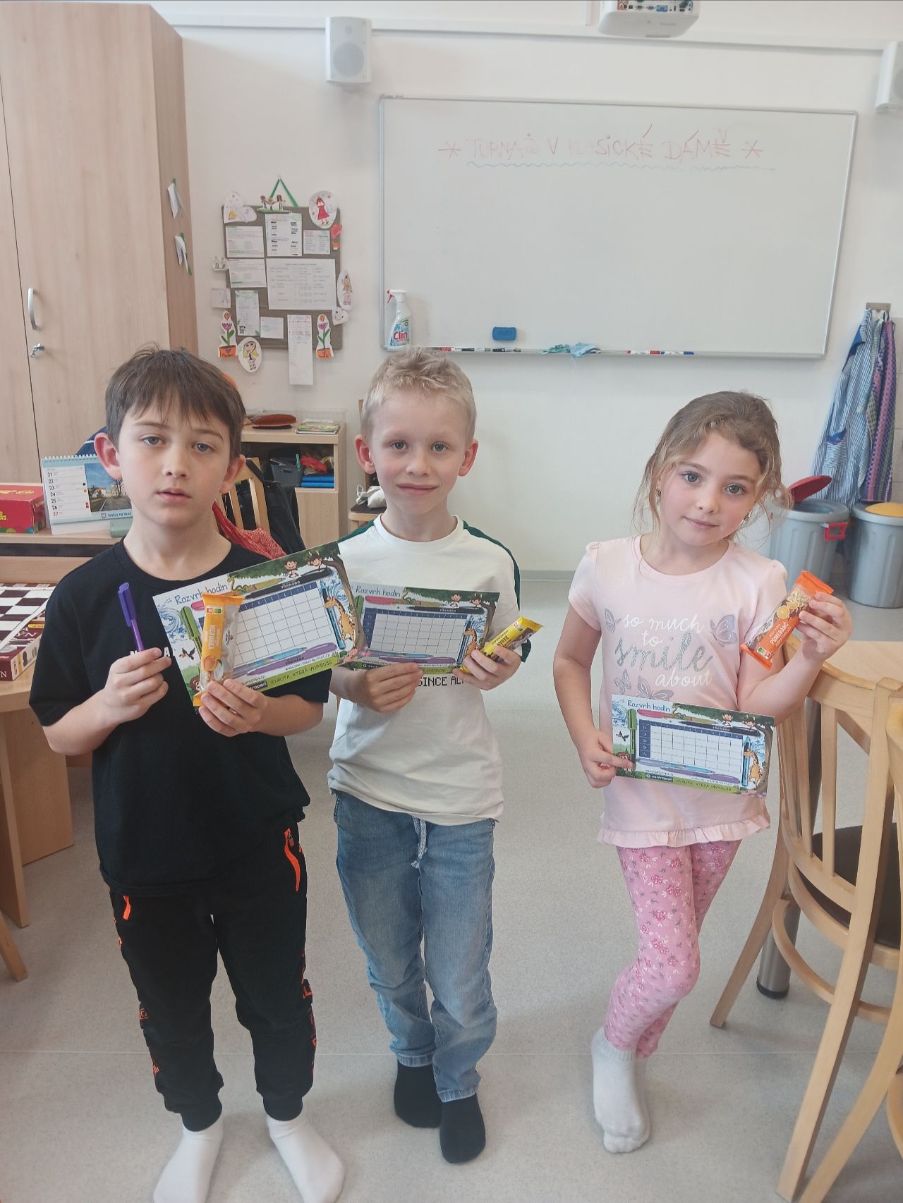 Následně si děti mohly všechna pravidla vyzkoušet v praxi a hned si zahrát několik her s různými soupeři. Následoval totiž malý turnaj v klasické dámě, kterého se úspěšně zúčastnily všechny děti. Pět nejúspěšnějších se dostalo do finále.