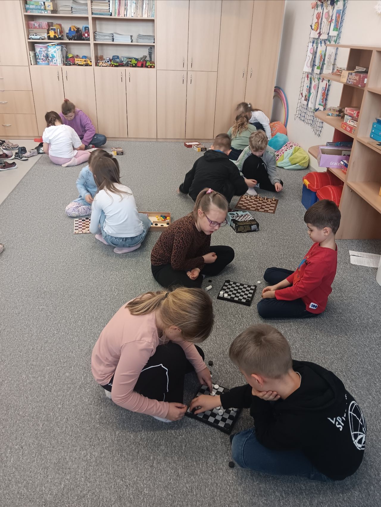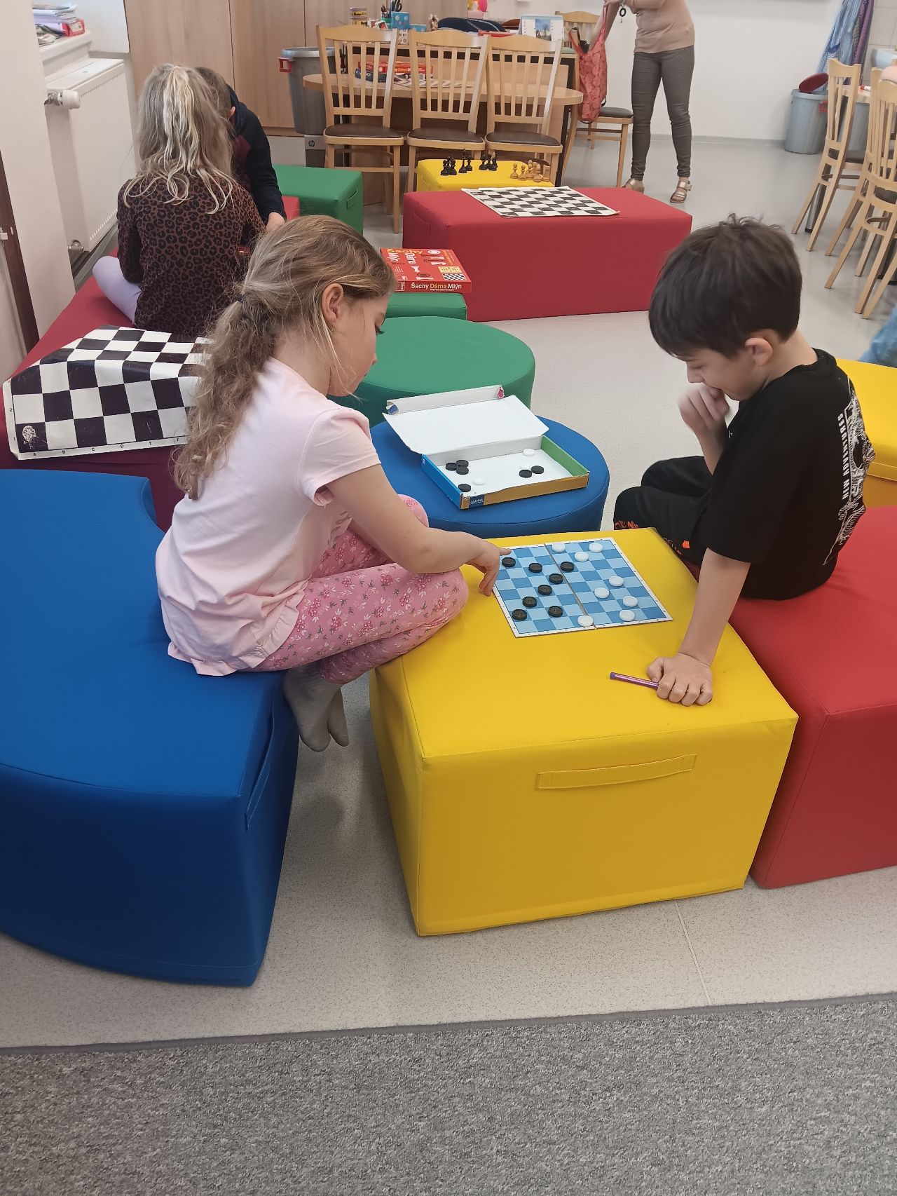 Během odpoledne si děti vyslechly dvě tematické motivační pohádky. Dále se seznámily s historií a pravidly hry v dámu.