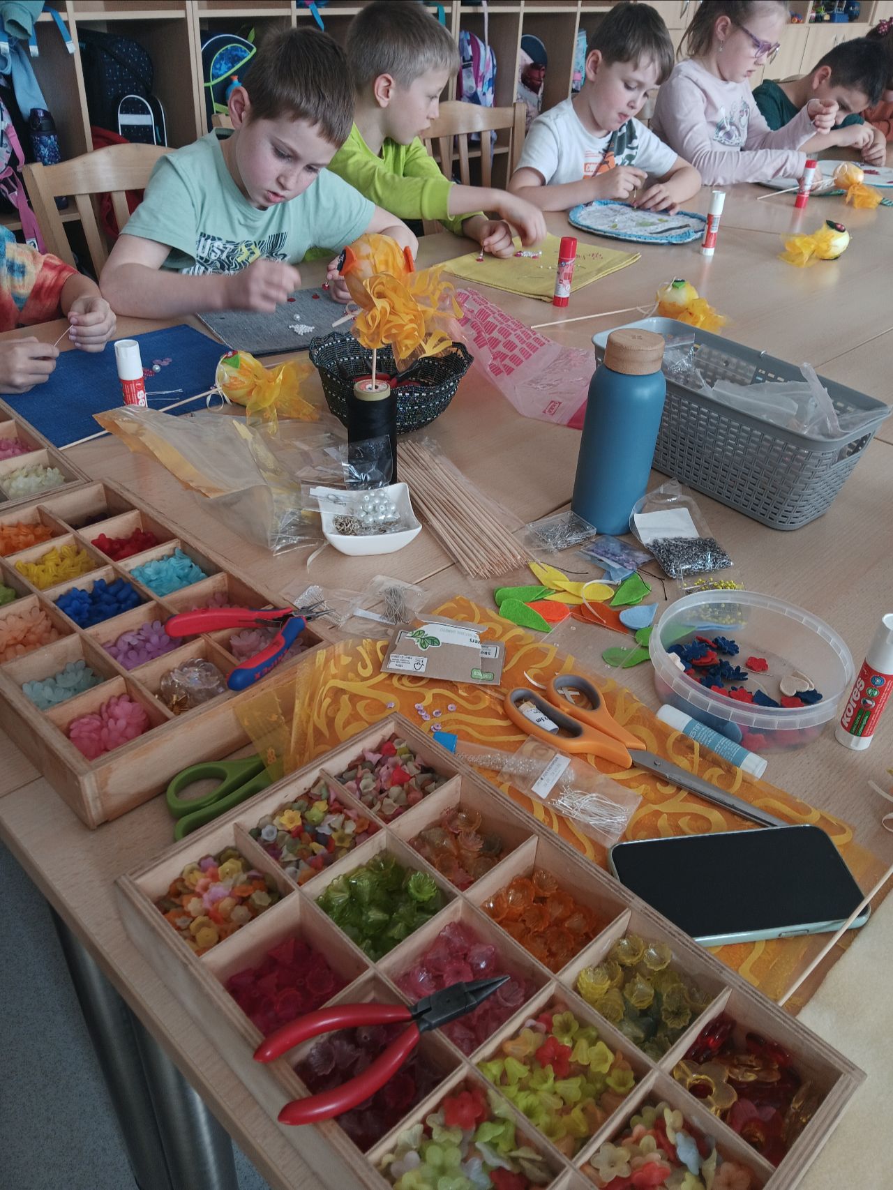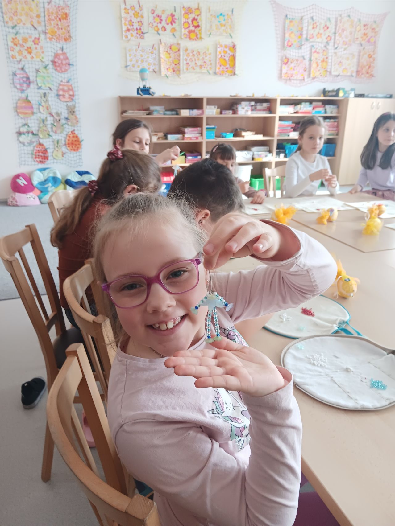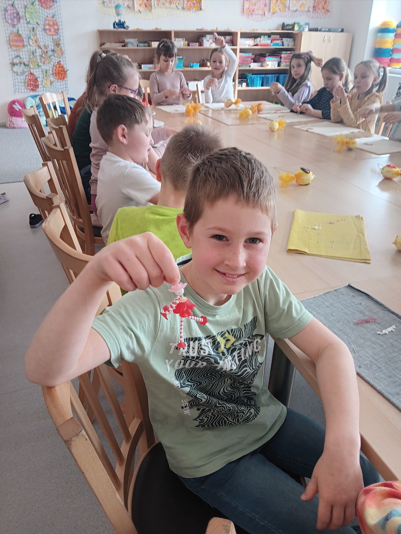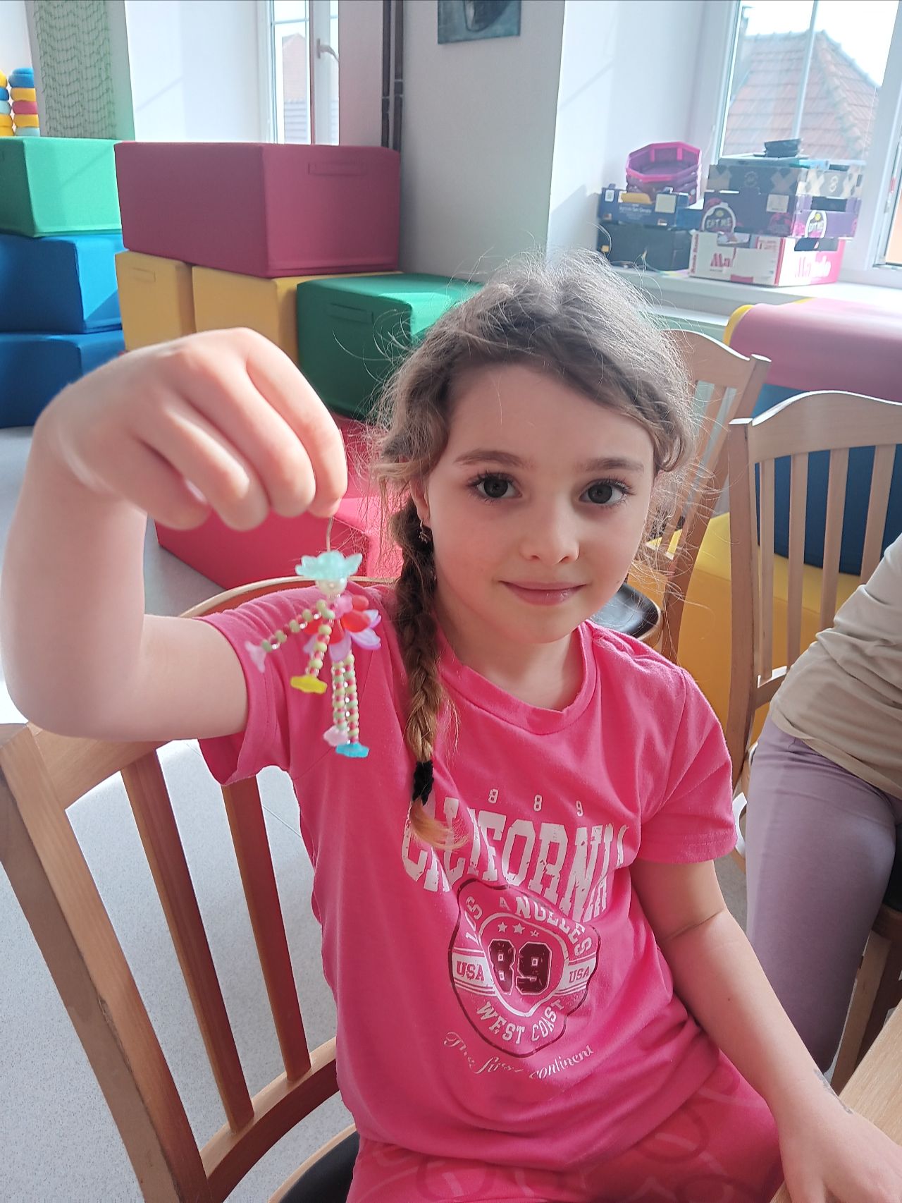 Děti si pod vedením paní lektorky Marty Nevrlé vyrobily zápich ve tvaru krásného ptáčka a vílu z korálků, kterou si mohou pověsit třeba na aktovku. Děti si užily krásné aktivní dvě hodiny ve znamení pohody a jemné motoriky, kterou v hojné míře dopřály svým prstíkům.