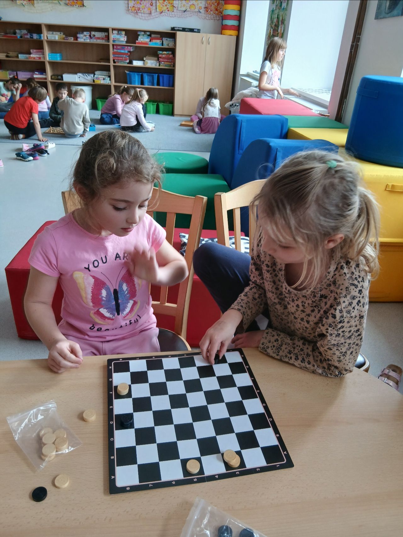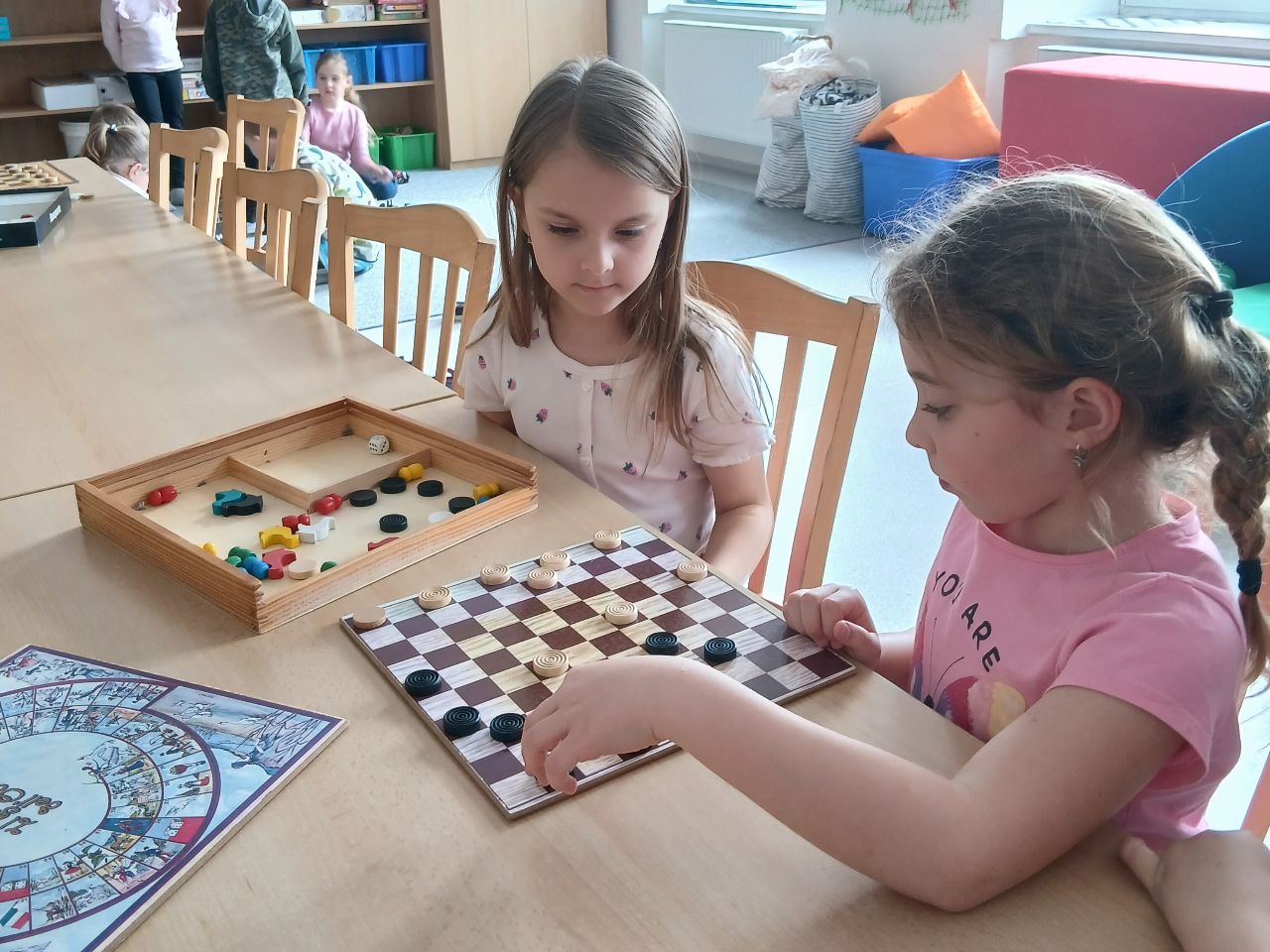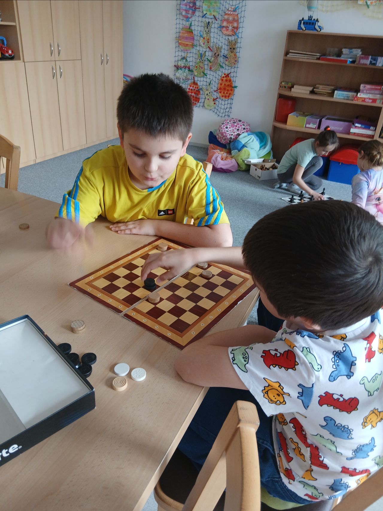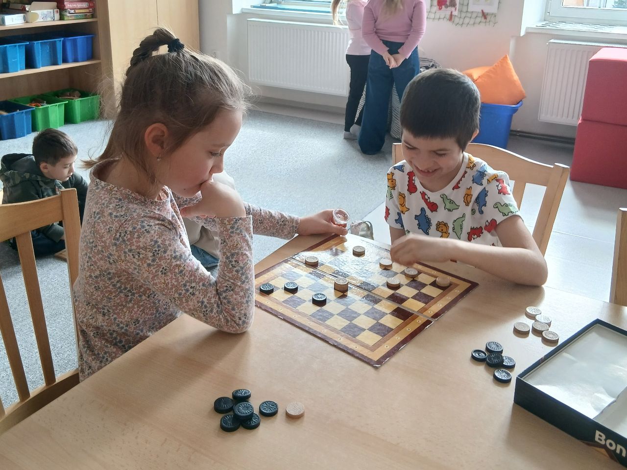 V měsíci dubnu 2026 si děti z I. oddělení školní družiny zahrály dvojitý turnaj v dámě.