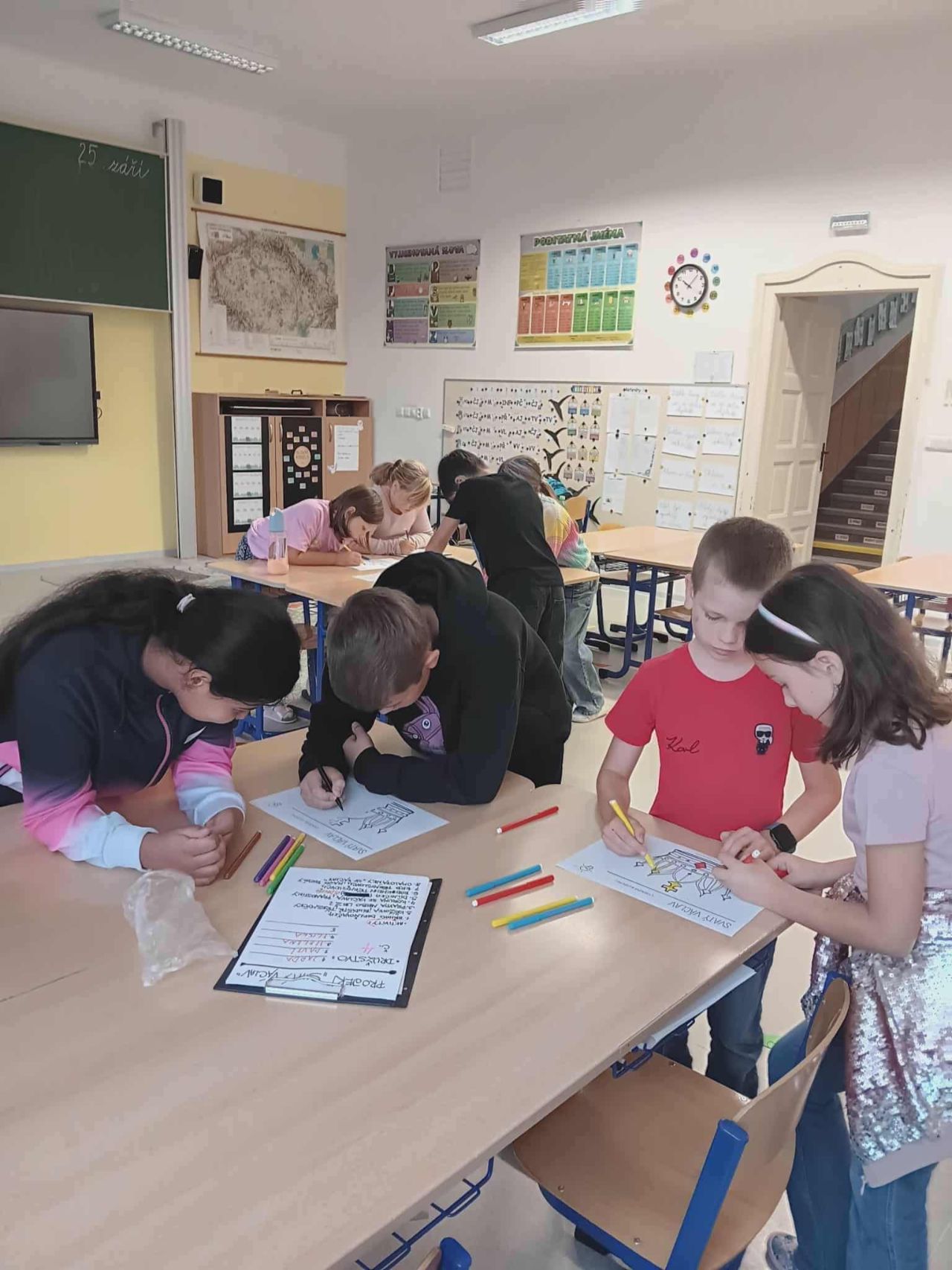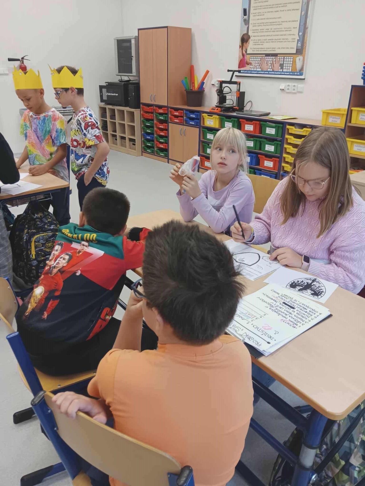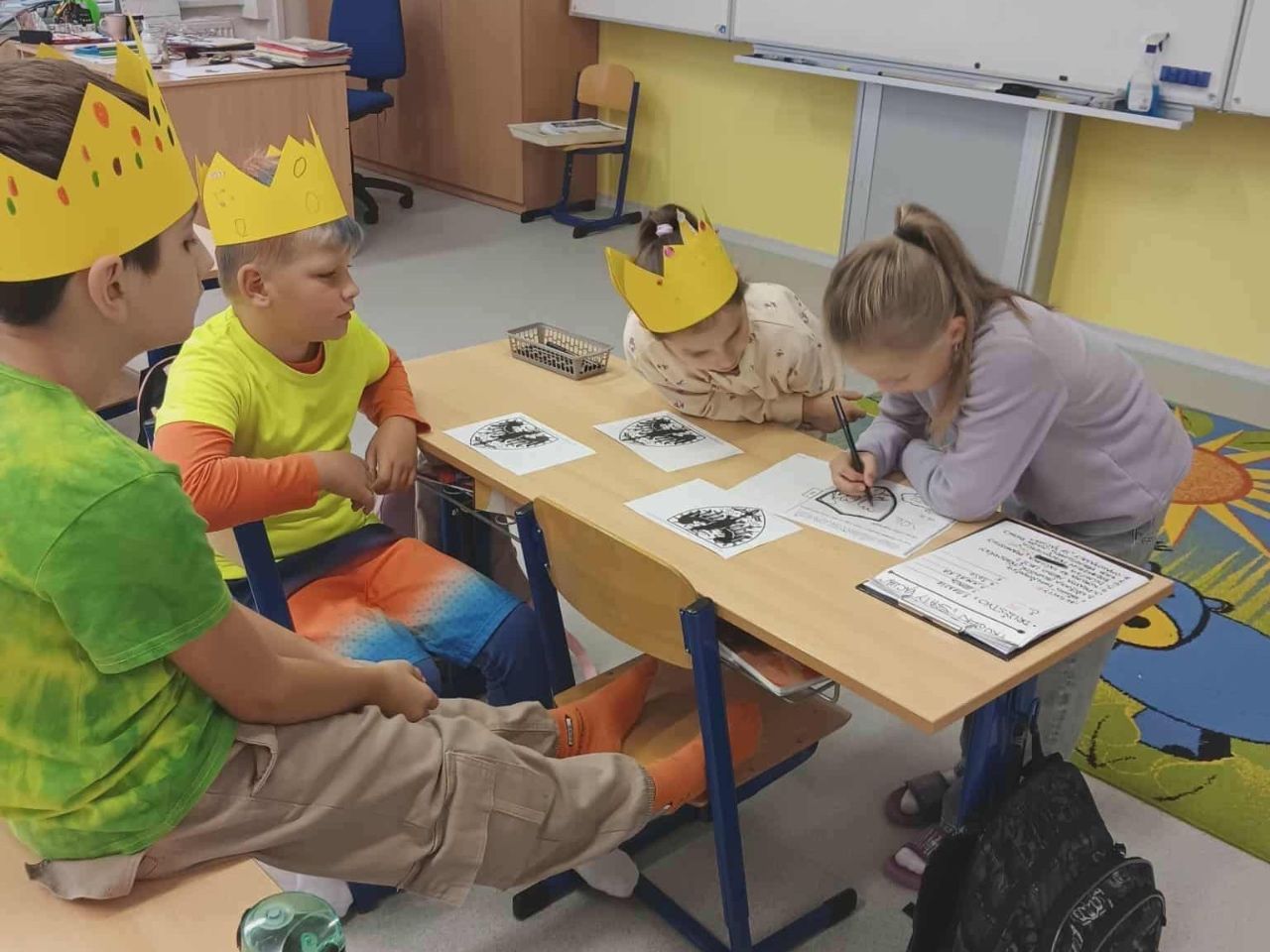 Třetí a čtvrtou vyučovací hodinu se žáci od druhé do páté třídy snažili uplatnit své nabyté vědomosti a zároveň získat co nejvíce nových informací o životě a kultu svatého Václava z rodu Přemyslovců.