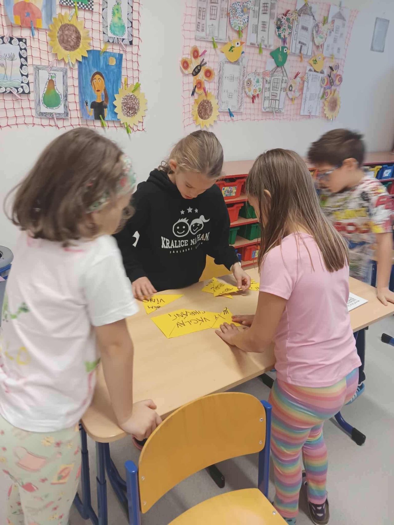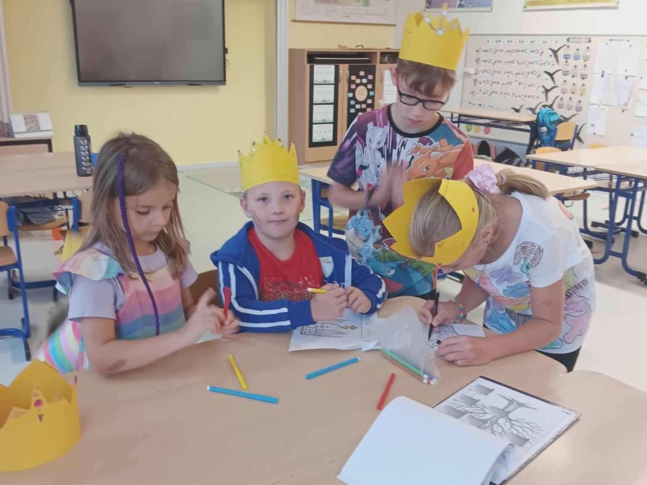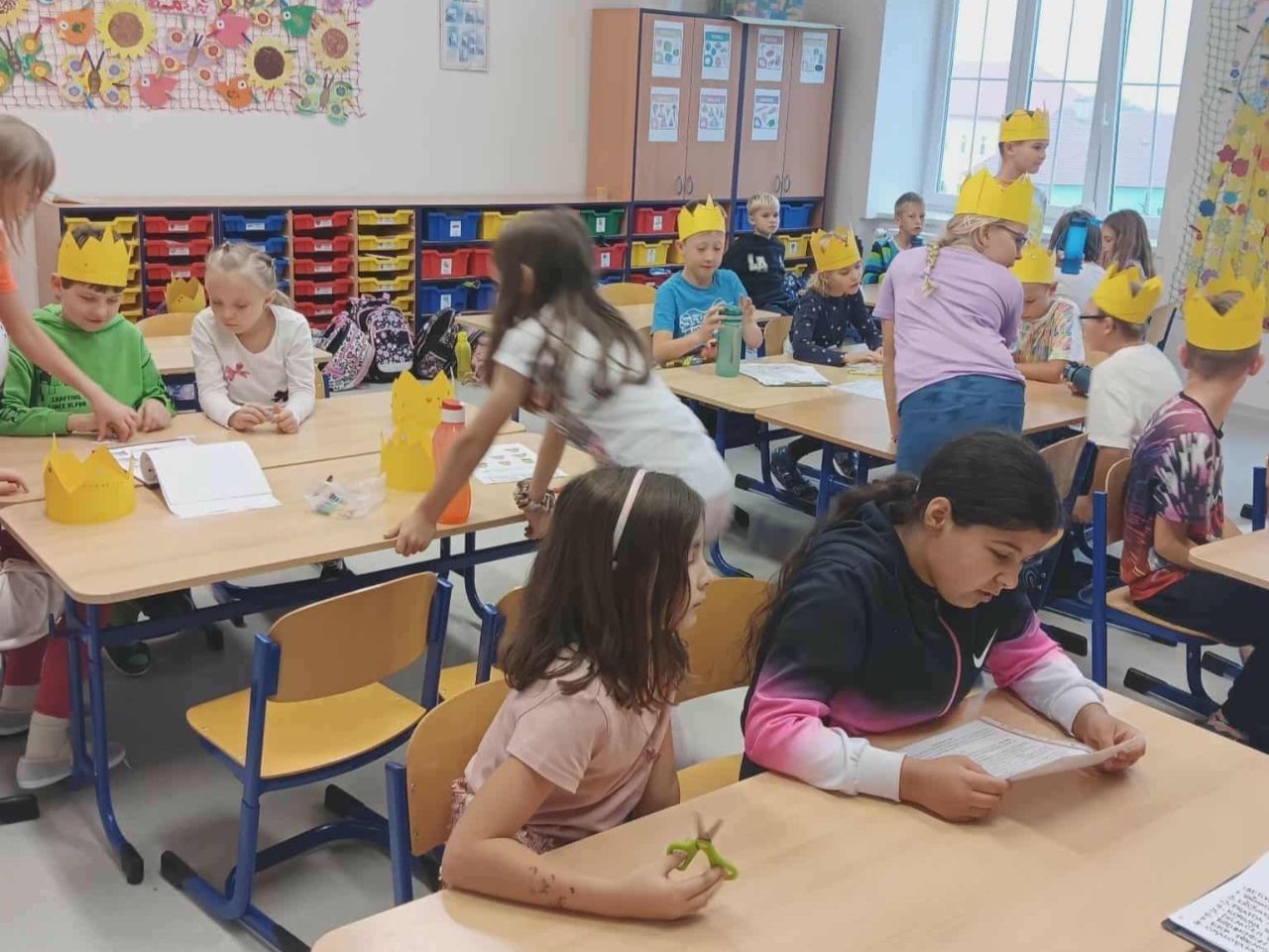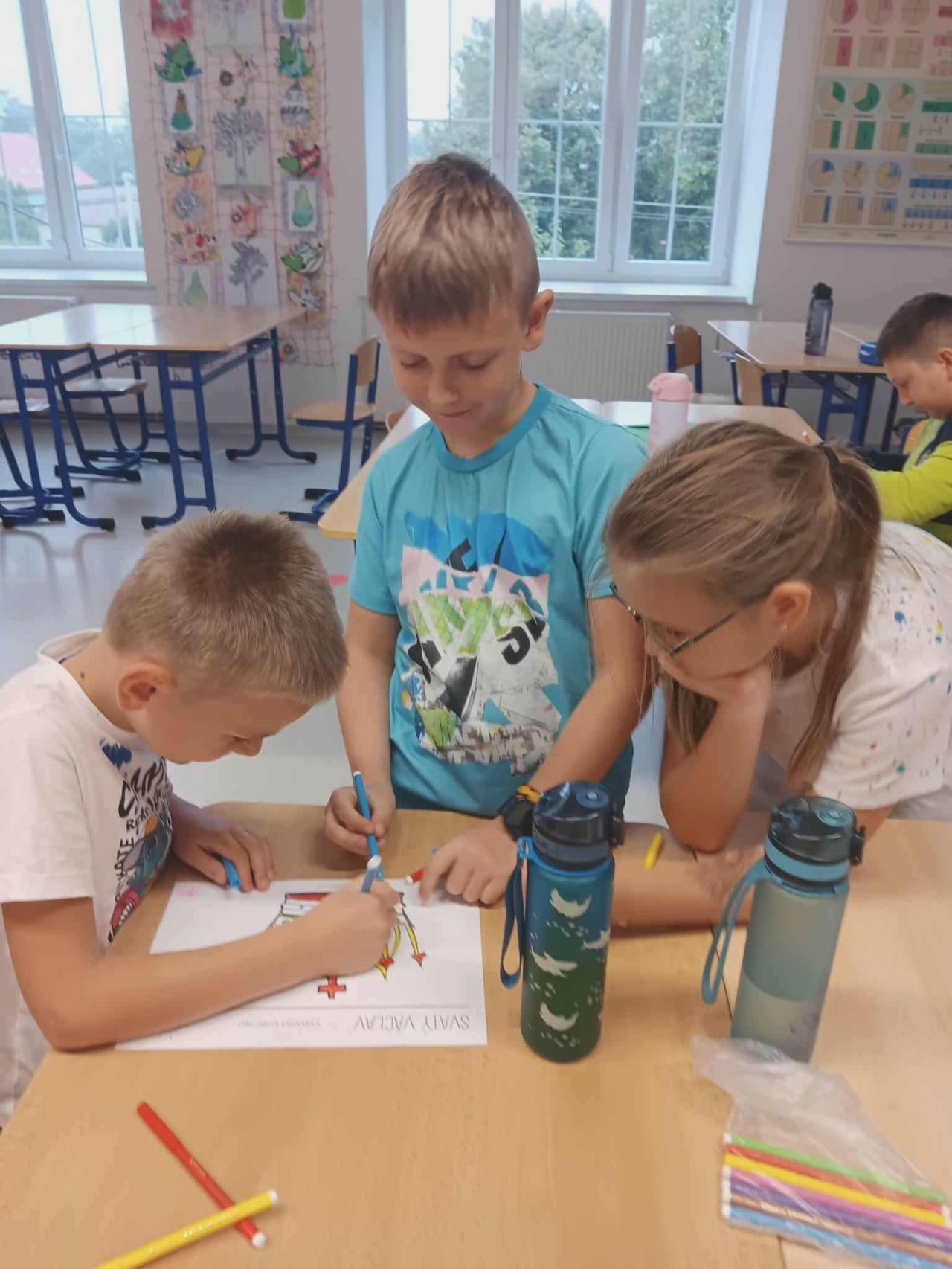 Třetí a čtvrtou vyučovací hodinu se žáci od druhé do páté třídy snažili uplatnit své nabyté vědomosti a zároveň získat co nejvíce nových informací o životě a kultu svatého Václava z rodu Přemyslovců.