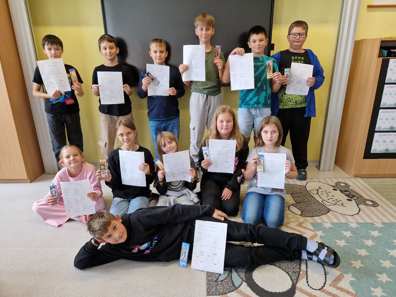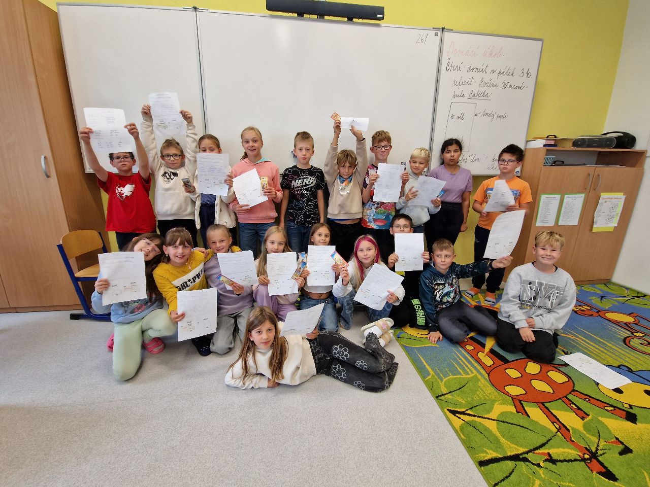 Po zvládnutí všech čtyř stanovišť získali do svého pracovního listu nálepku s textem v některém z evropských jazyků a jako malý dárek tematickou záložku do knihy.
