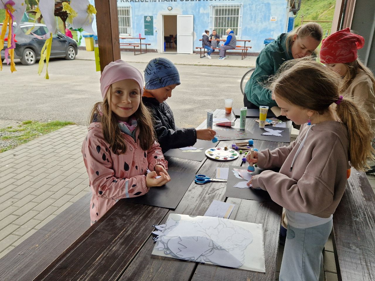 Kromě toho na děti čekalo 5 úkolů: opičí dráha, dílnička (obmalovávání listu, jablíčka nebo ježečka), puzzle, přiřazování podle barev a tvarů a navlékání těstovin na špejli. Za splnění všech úkolů získaly sladkou odměnu.