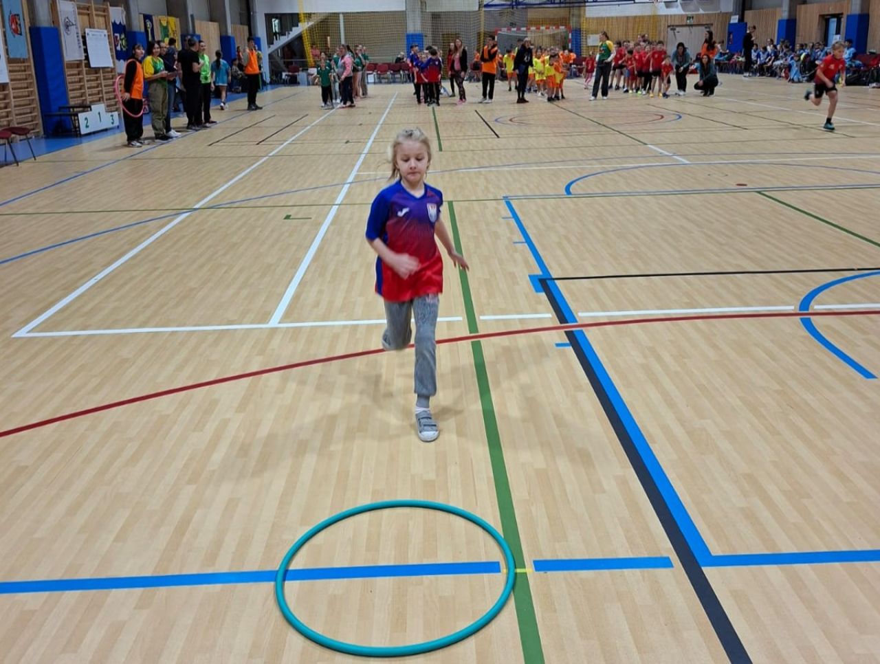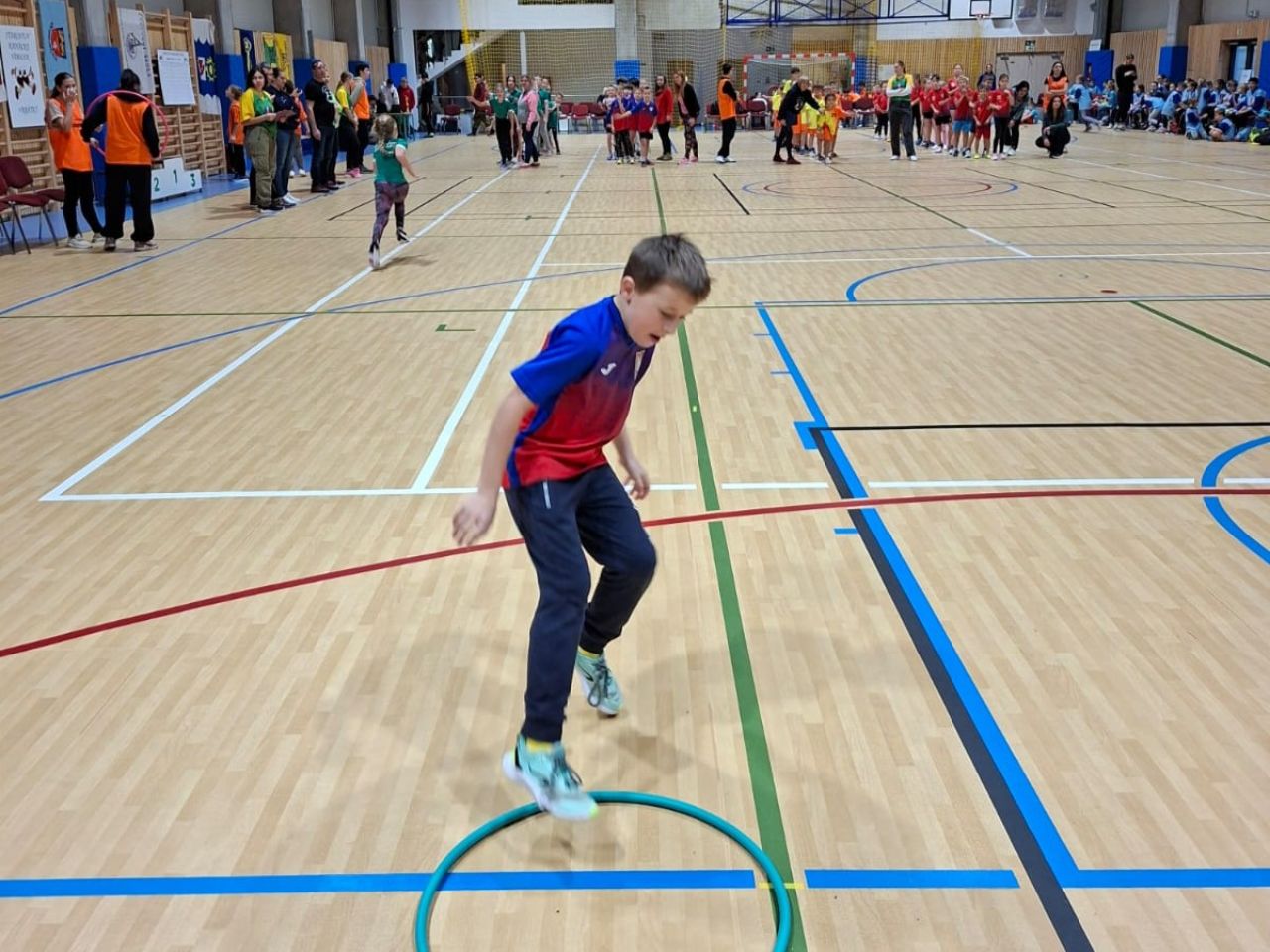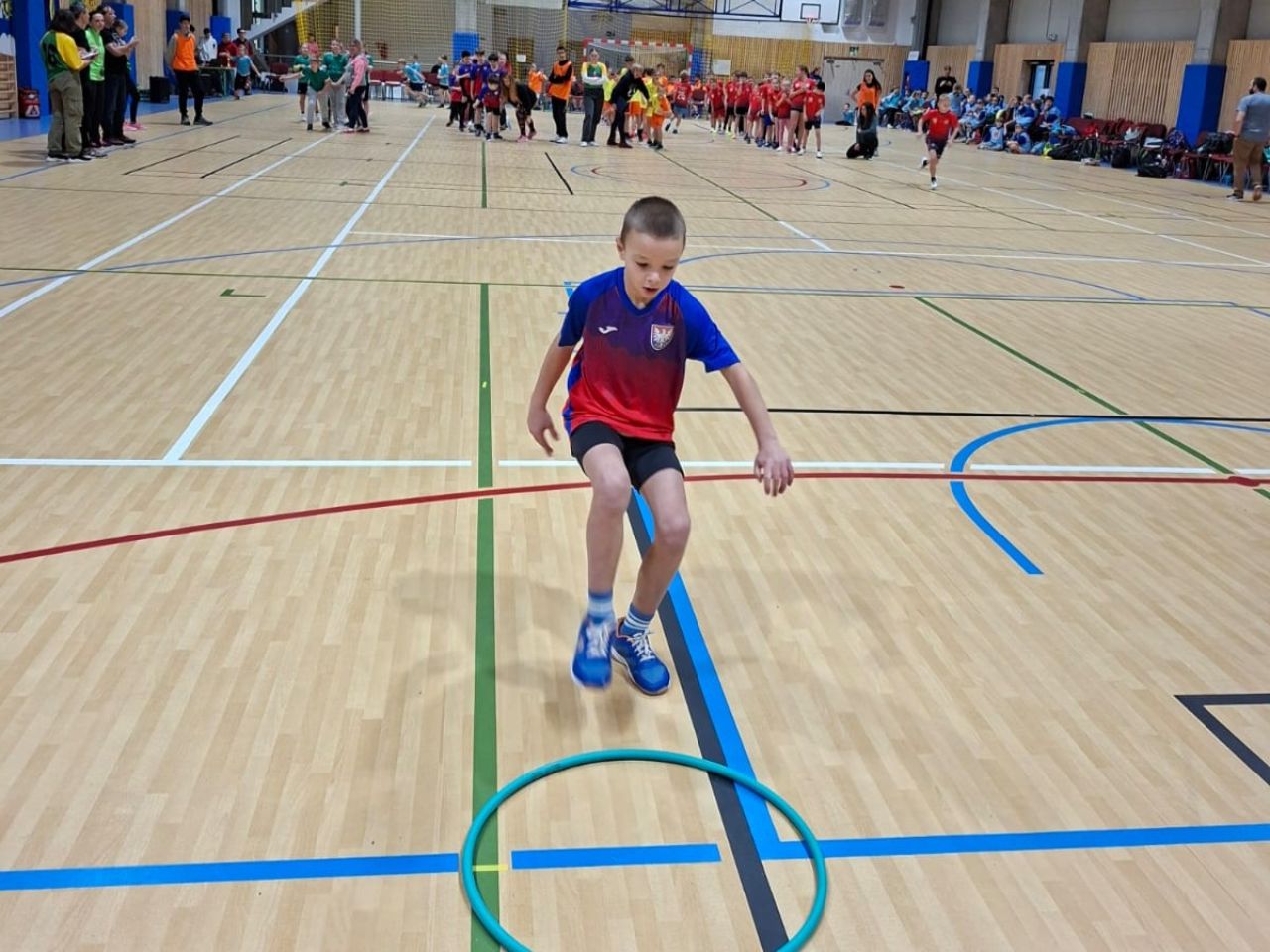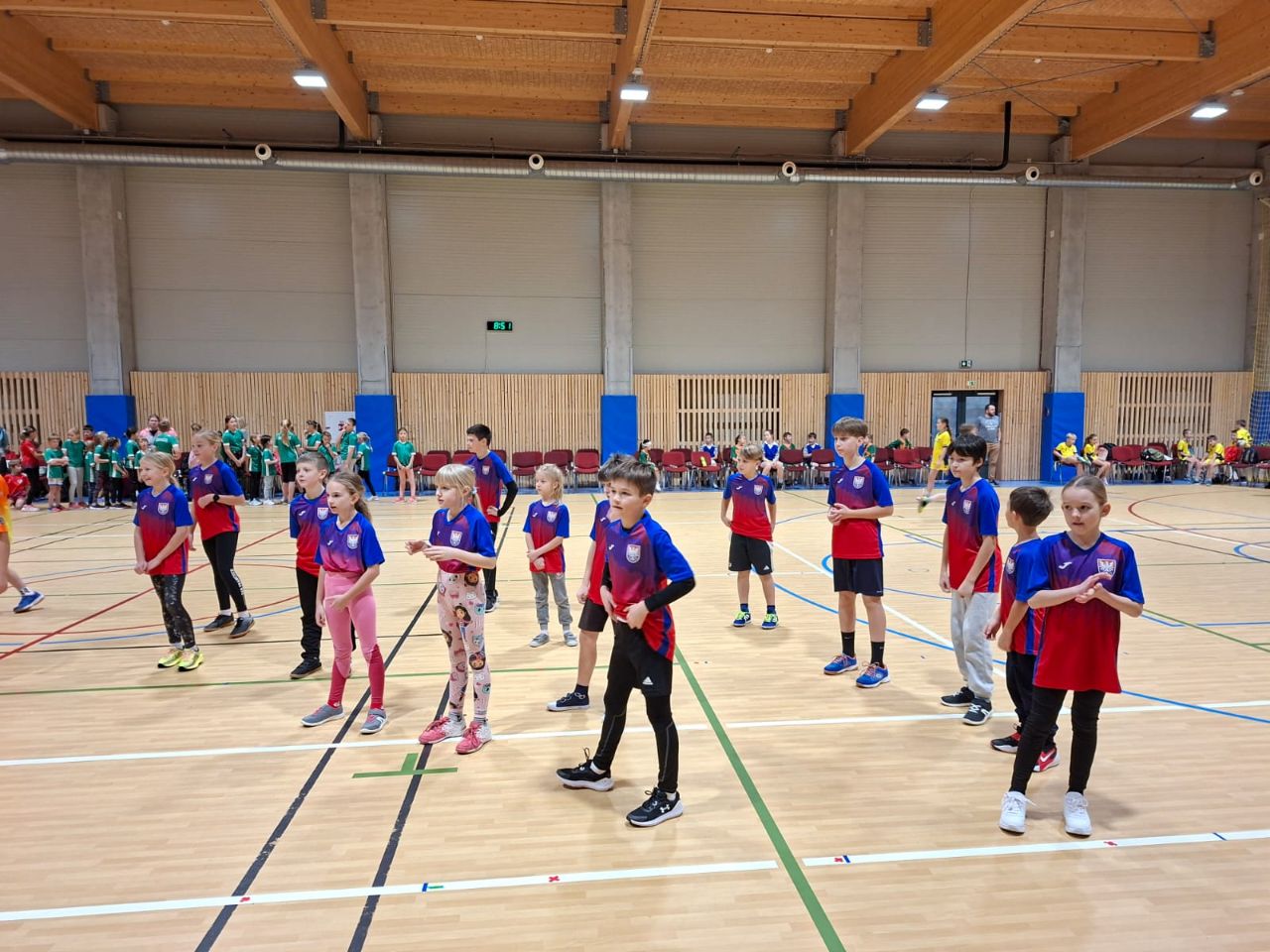 Po příjezdu a slavnostním zahájení čekala žáky společná rozcvička.