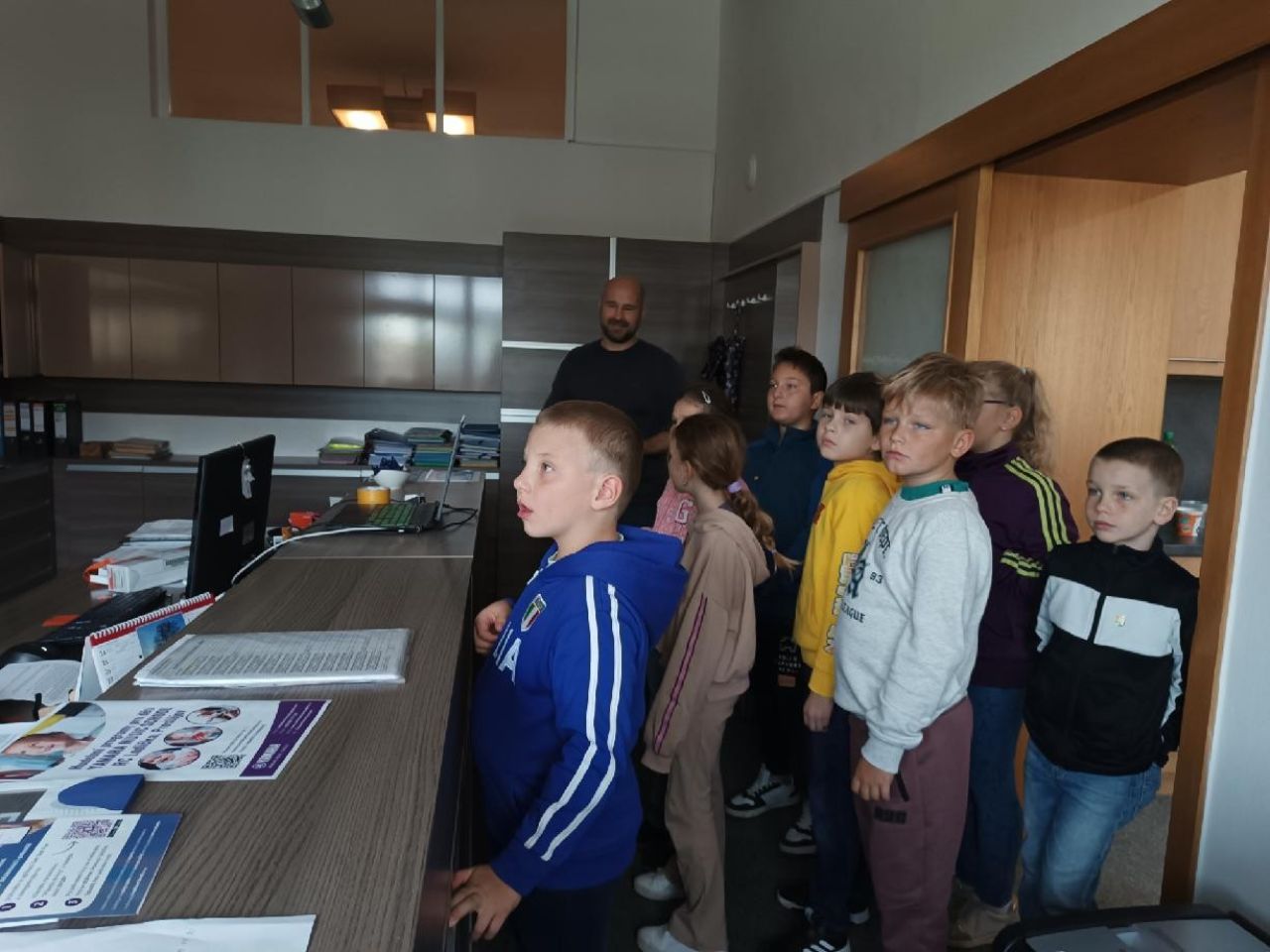 V zasedací místnosti jim pan starosta pověděl, co všechno jeho práce obnáší a odpověděl na jejich zvídavé otázky. Rovněž se dětí ptal, jak se jim v Kralicích žije a co by si přály v obci zlepšit. Nápady byly rozmanité, některé úsměvné a některé pro pana starostu jistě i podnětné. Aby děti prokázaly, co o Kralicích už vědí, položil jim pan starosta několik otázek a za správnou odpověď je odměnil odznakem se znakem Kralic.
