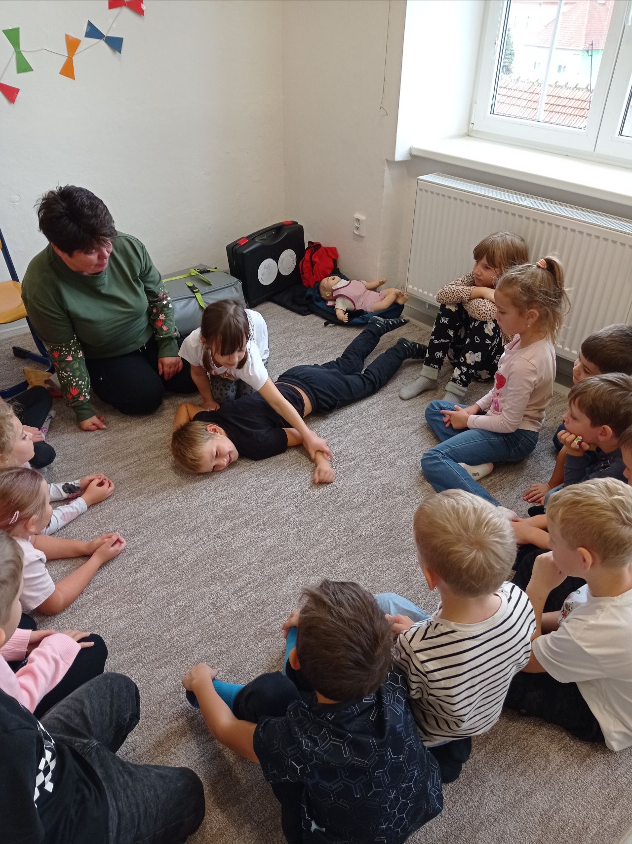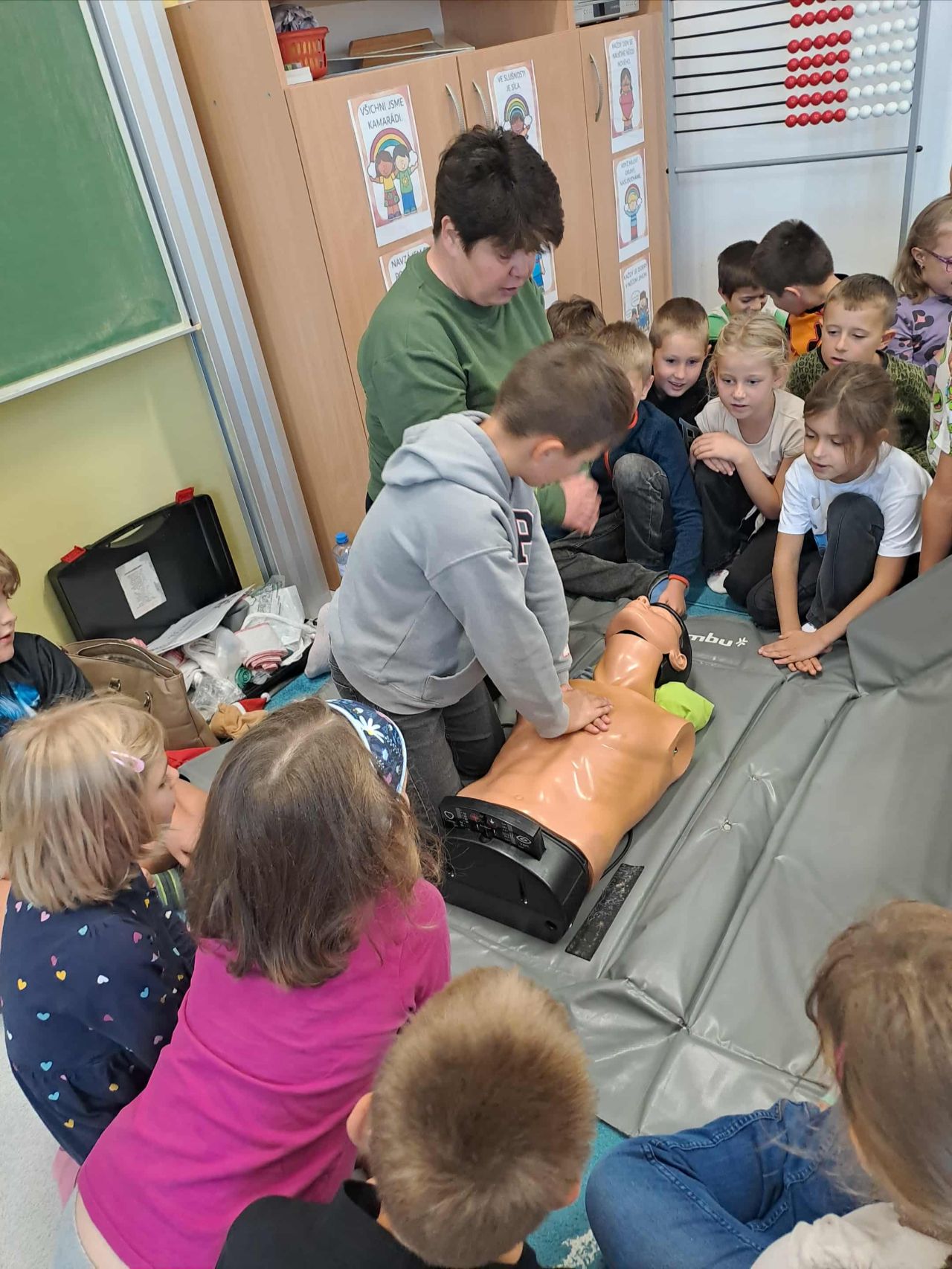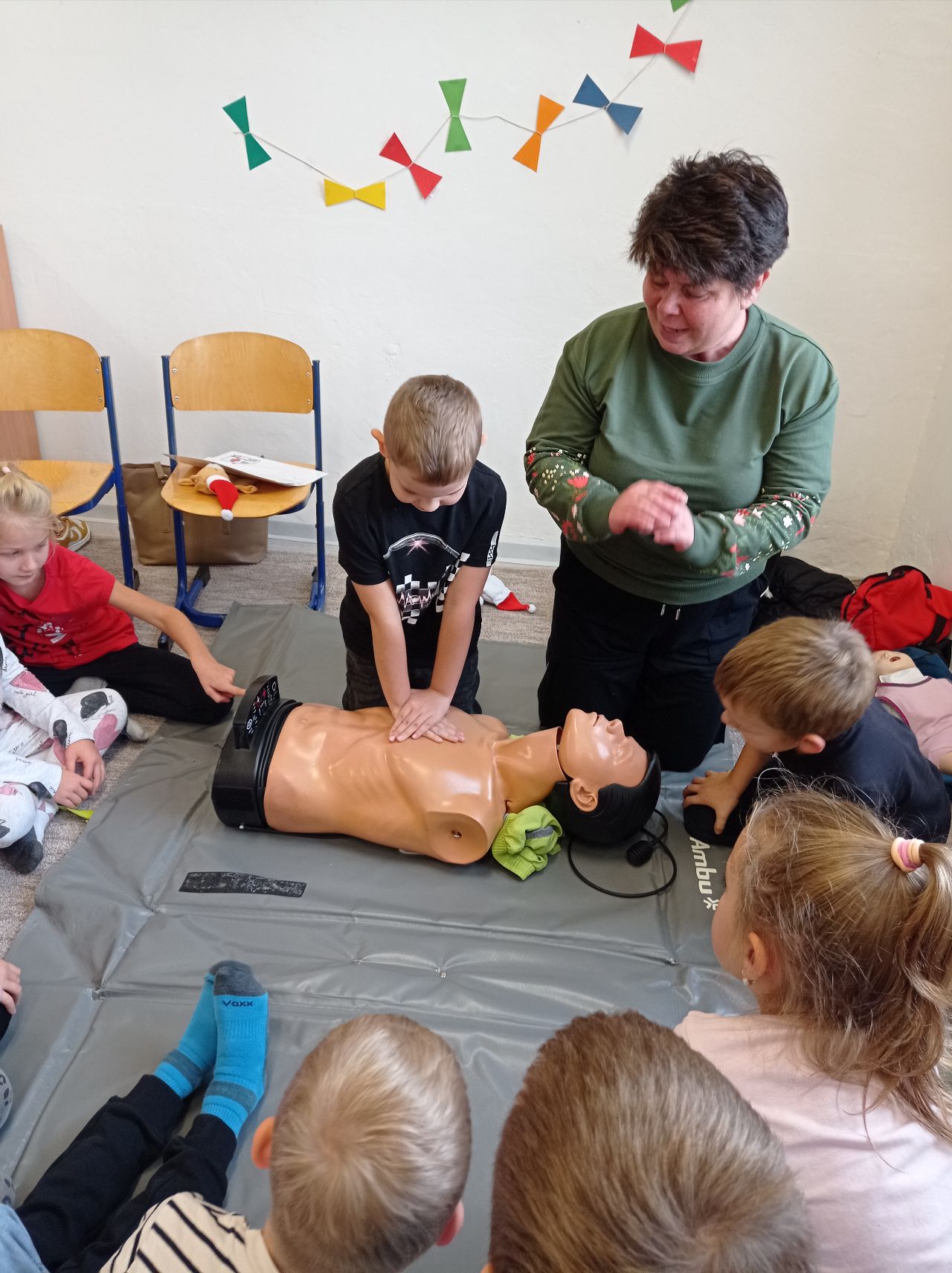 Žáci se dověděli, co je bezvědomí, trojitý manévr, masáž hrudníku, zotavovací pozice, Heimlichův chvat. Také si pomocí říkanky zopakovali důležitá telefonní čísla. Někteří si vyzkoušeli obvazovou techniku hlavy, spirálový obvaz dolní končetiny a nechyběla masáž srdce na figuríně.