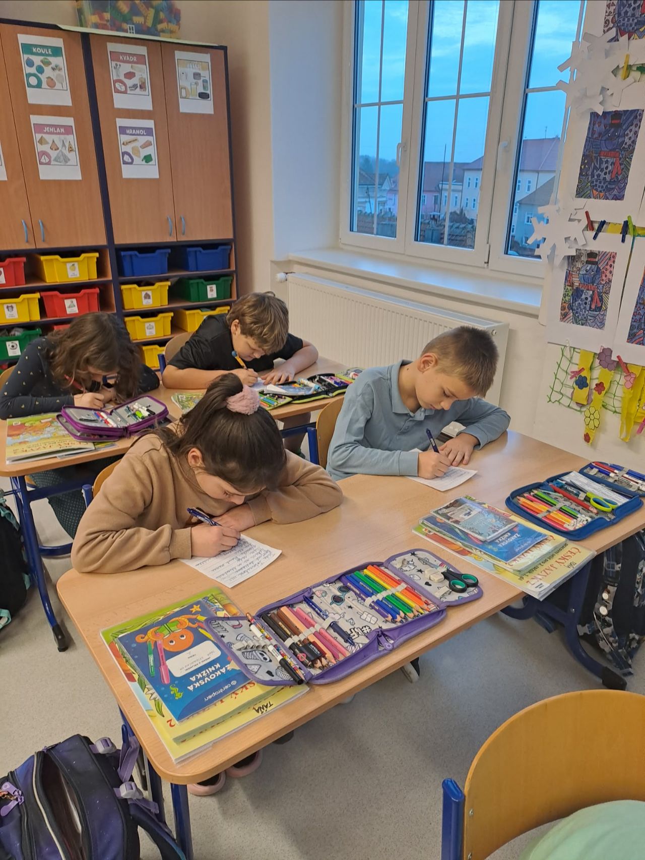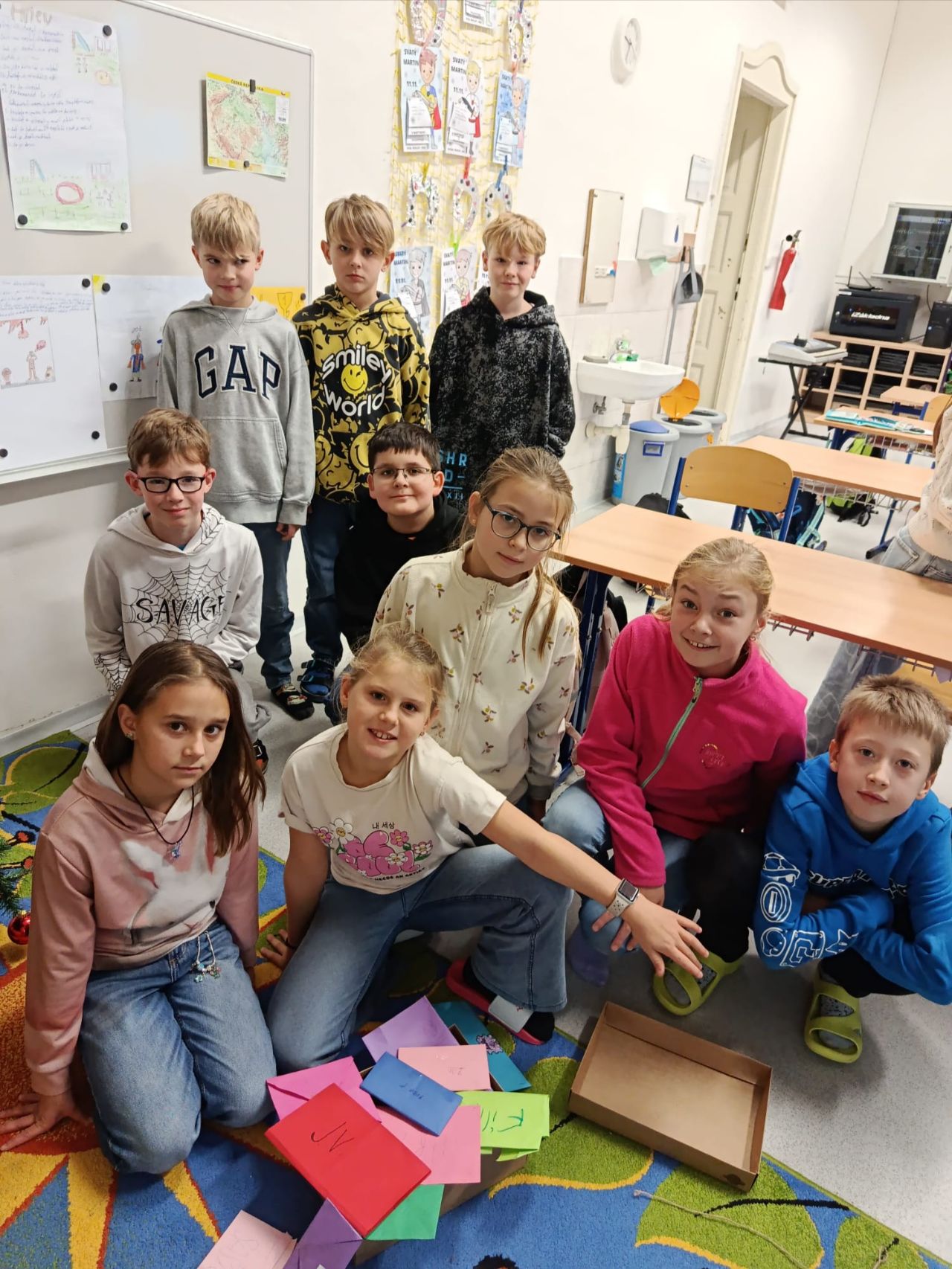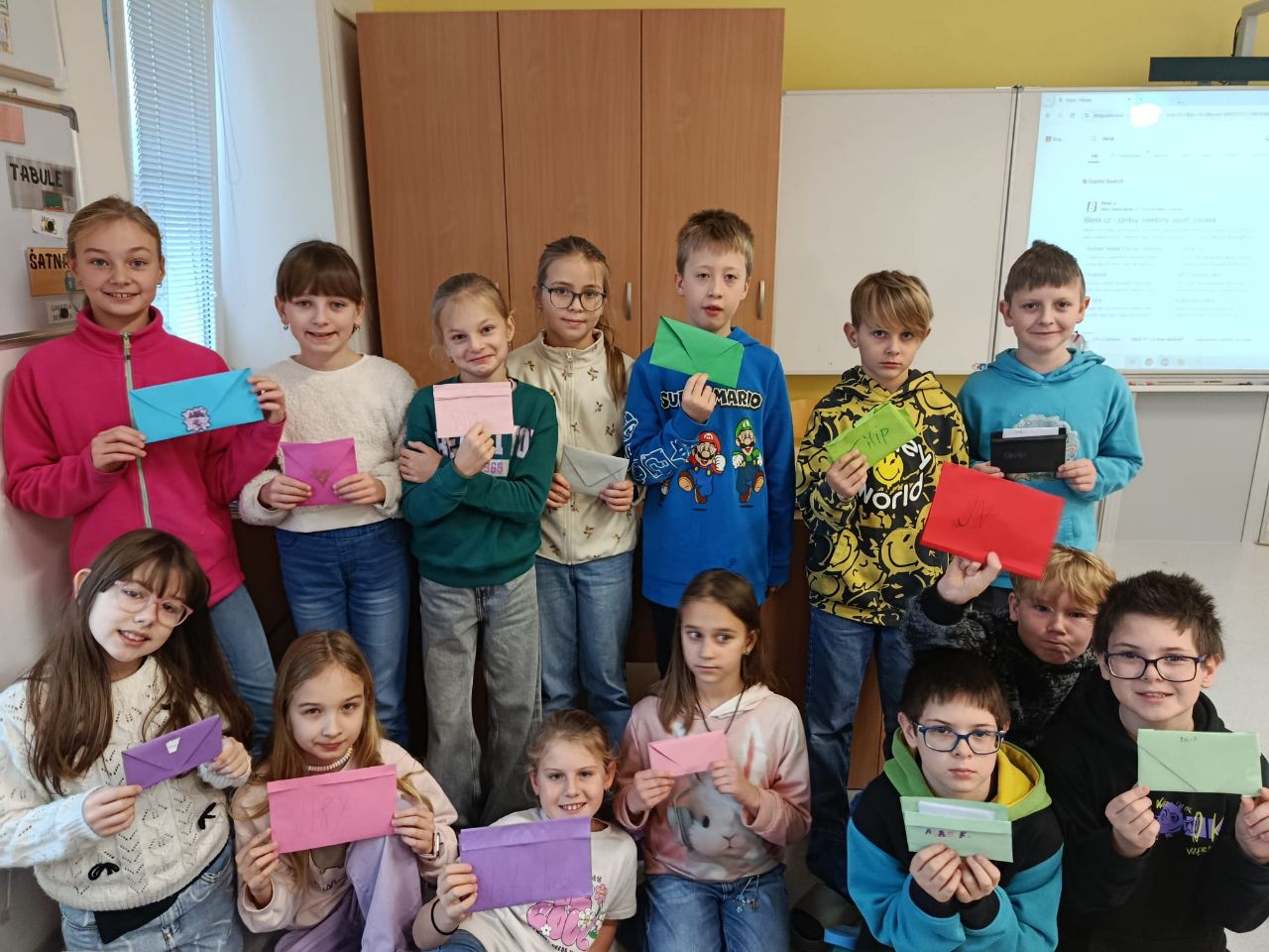 Žáci 4. ročníku psali na téma: Jakým kamarádem bych chtěl být. Celá třída se shodla na tom, že každý by chtěl být kamarádem, vedle kterého se druhý cítí dobře. Nakonec si děti vytvořily obálky a psaní zalepily.