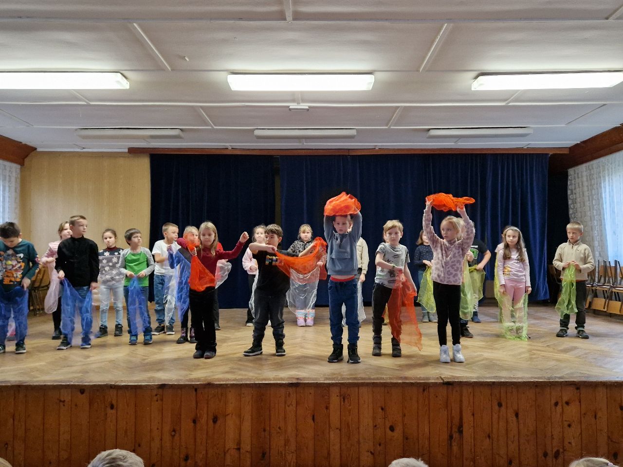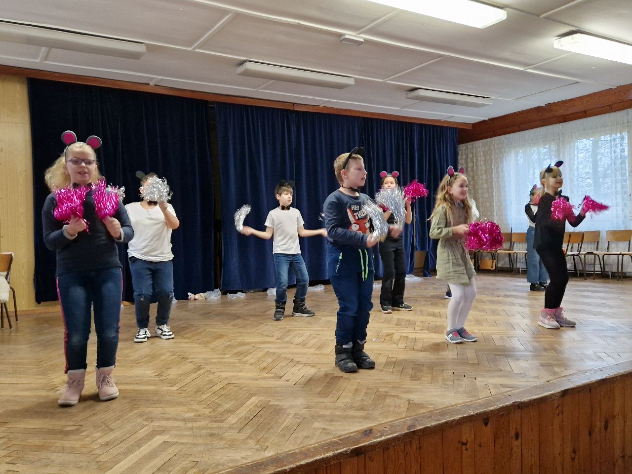 V kulturním domě si všichni žáci vyzkoušeli, co je ve čtvrtek odpoledne čeká a také viděli vystoupení ostatních tříd a družin.
