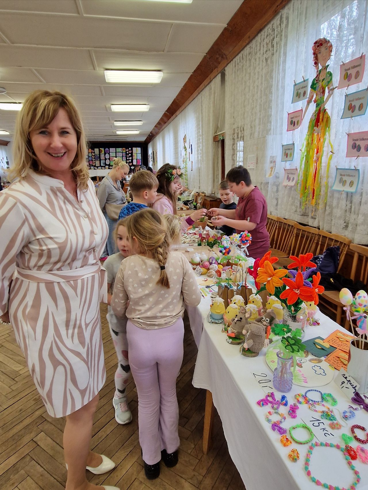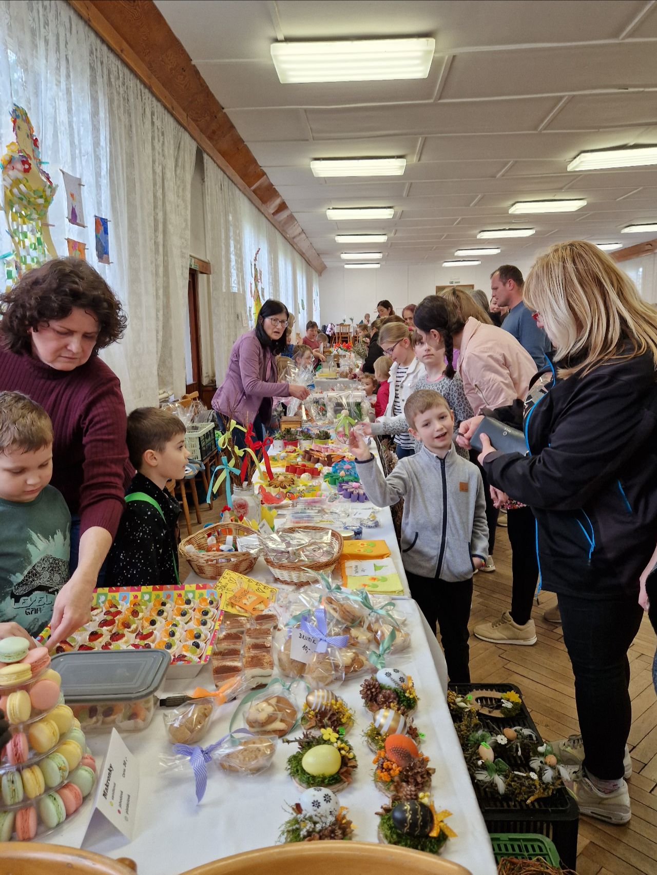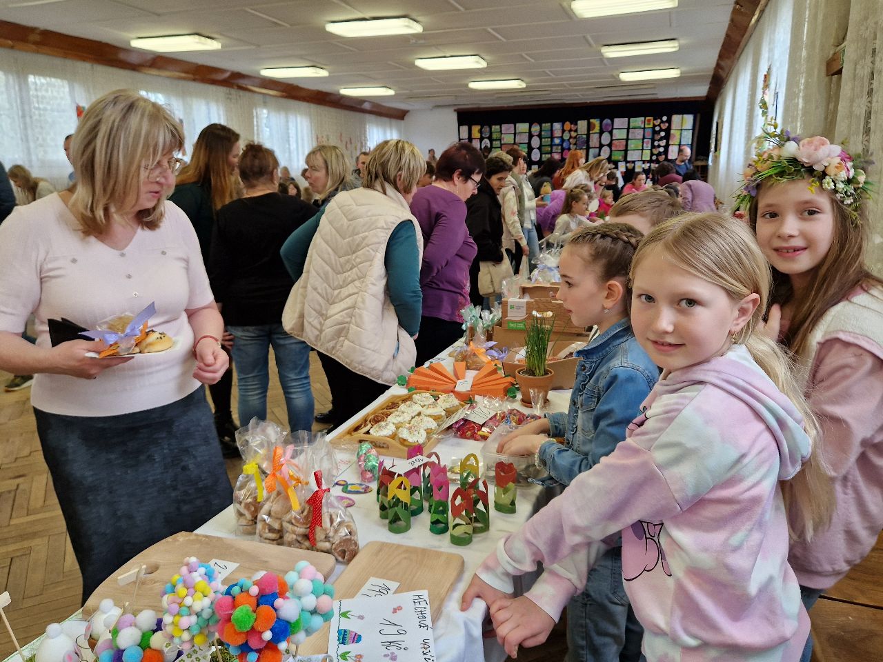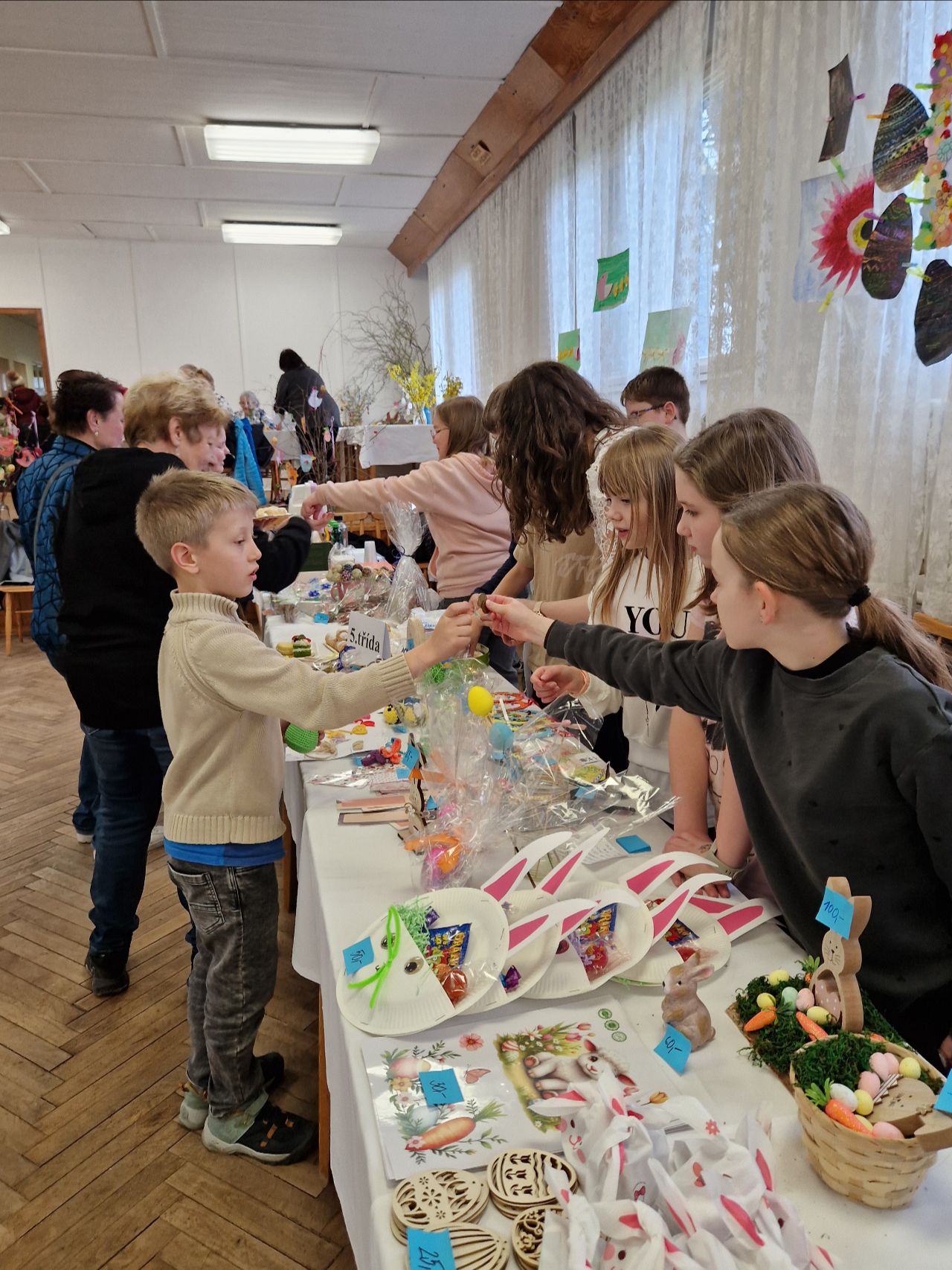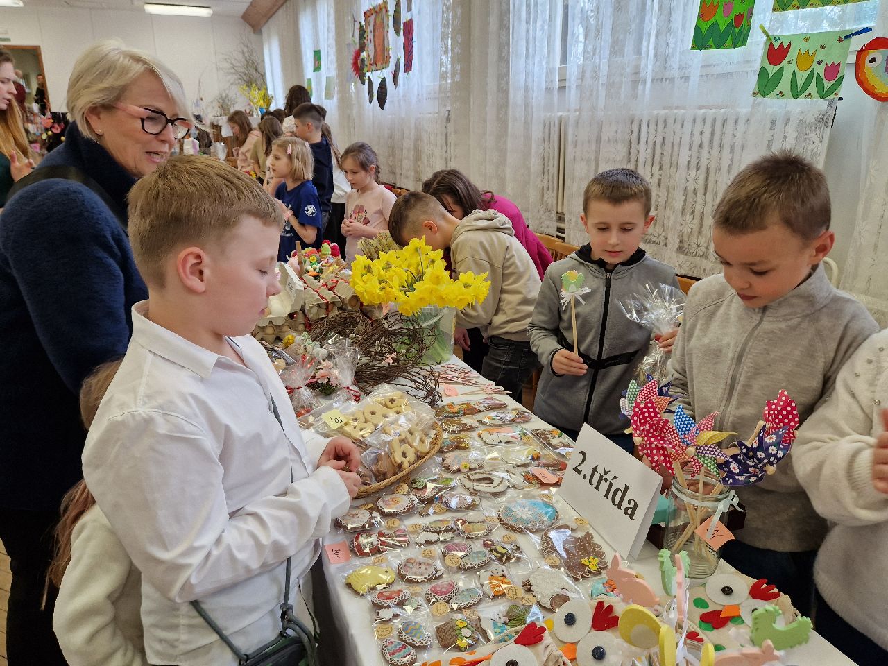 Hlavním lákadlem pro všechny byly prodejní stánky jednotlivých tříd, v nichž obratní prodavači a prodavačky nabízeli nepřeberné množství sladkých i slaných dobrot, jarní a velikonoční dekorace, květiny a další zajímavé zboží.