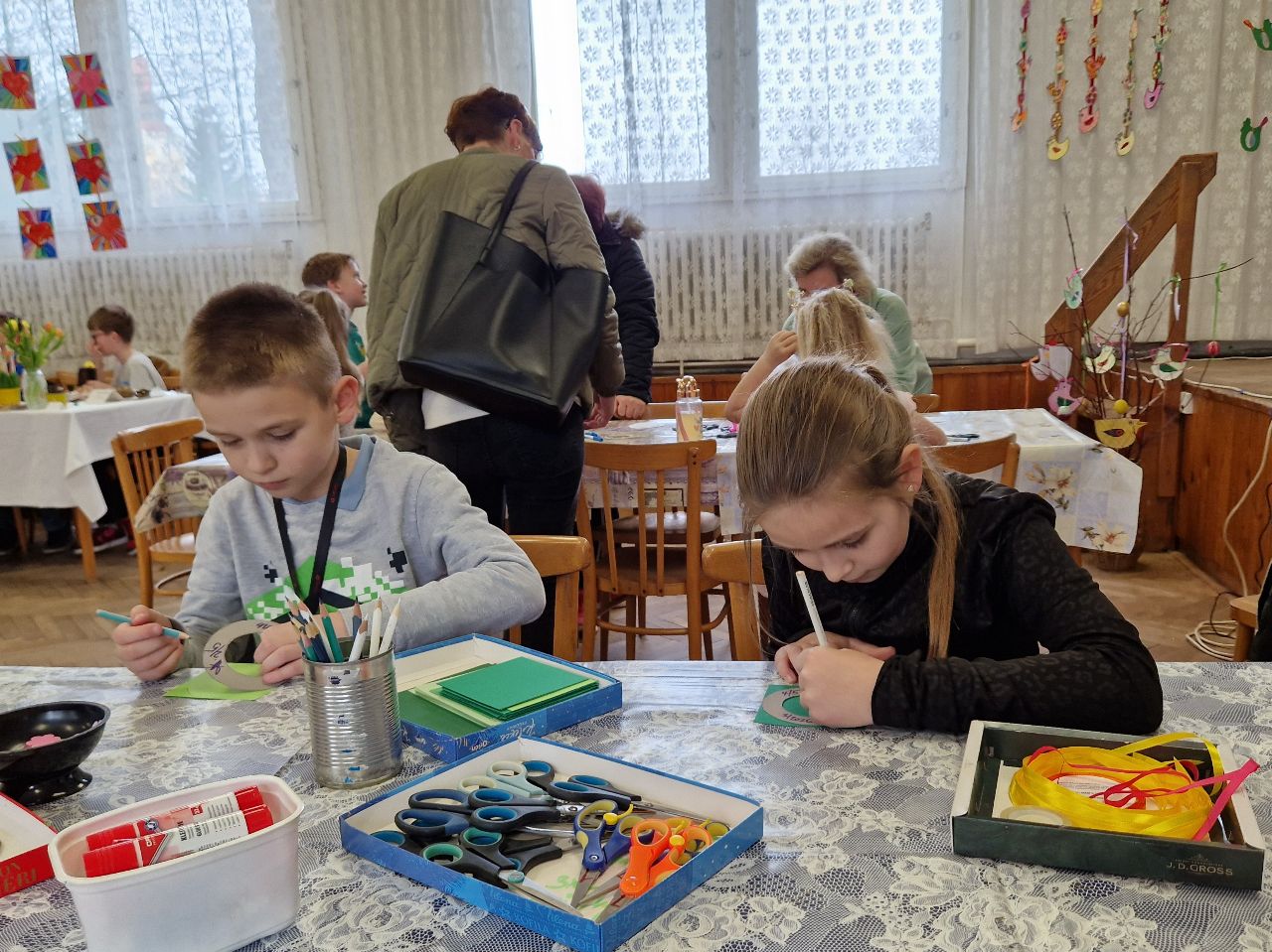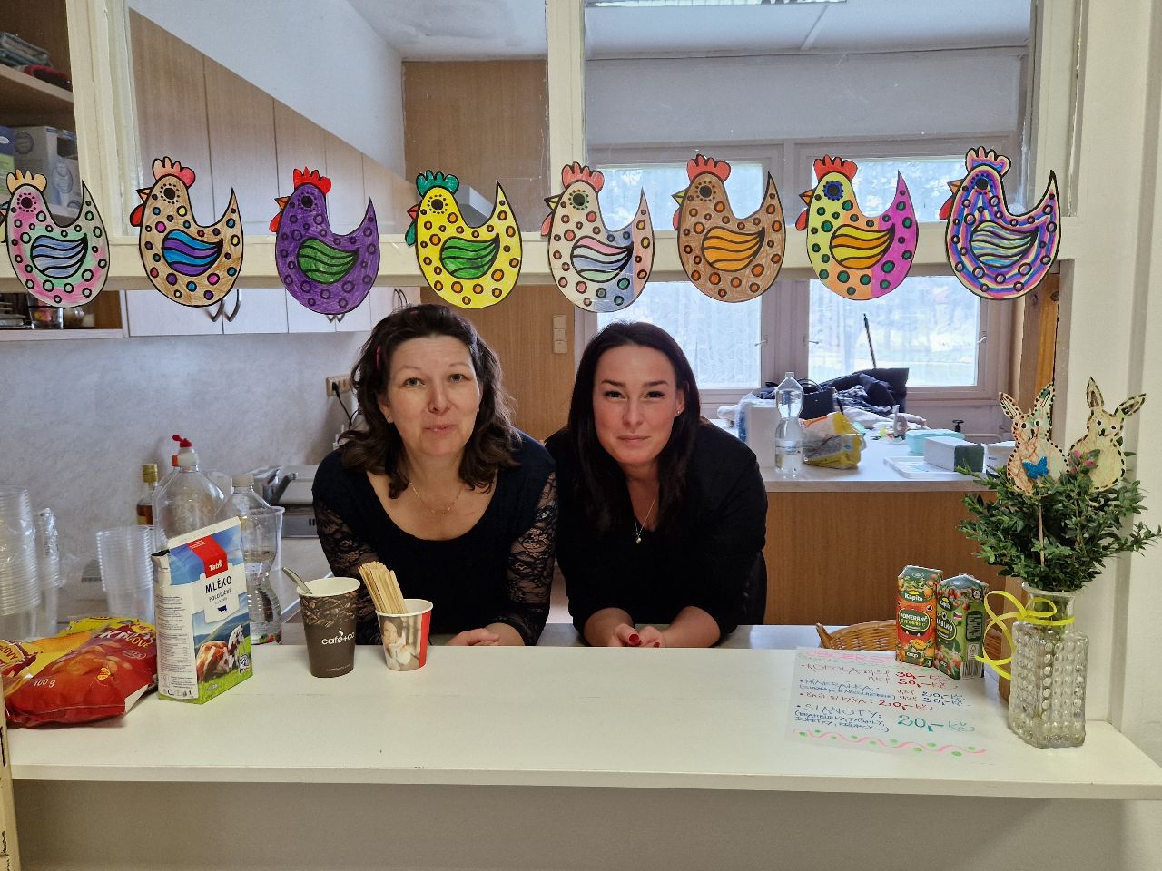 Návštěvníci si také mohli zakoupit drobné občerstvení v bufetu a posedět s přáteli u stolů s velikonočními dekoracemi.