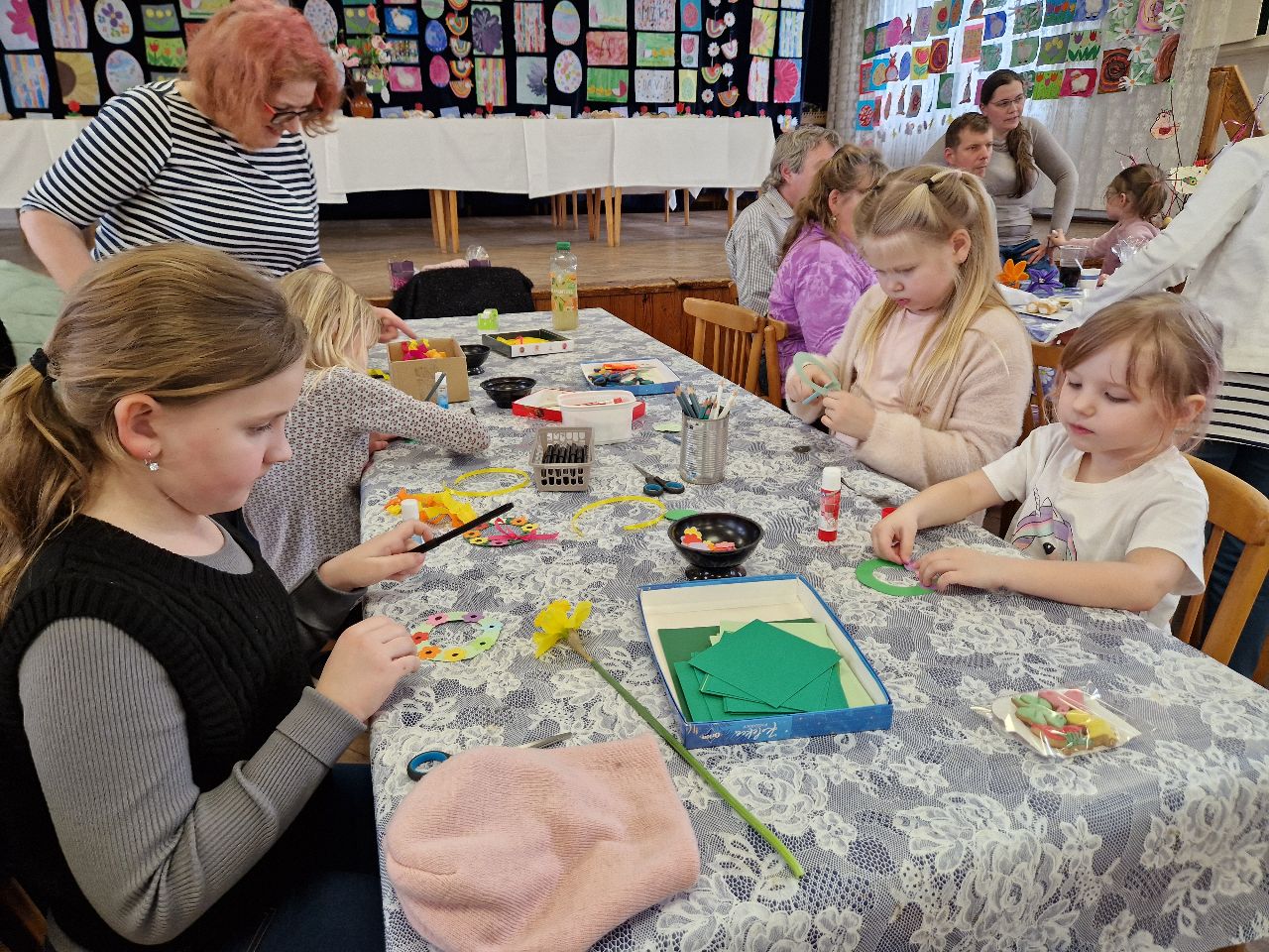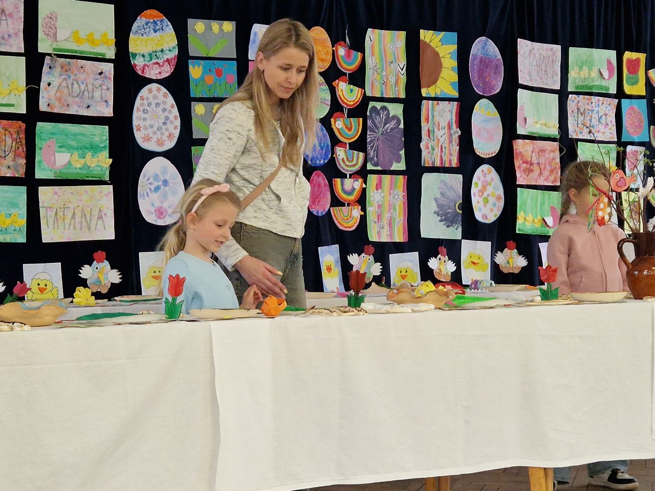Ve svátečně vyzdobeném kulturním domě byla pro návštěvníky připravena výstava výtvarných, rukodělných a keramických prací, tvořivé dílničky a ukázka pletení pomlázky. Zdatní zájemci si mohli zkusit uplést letošní pomlázku sami.